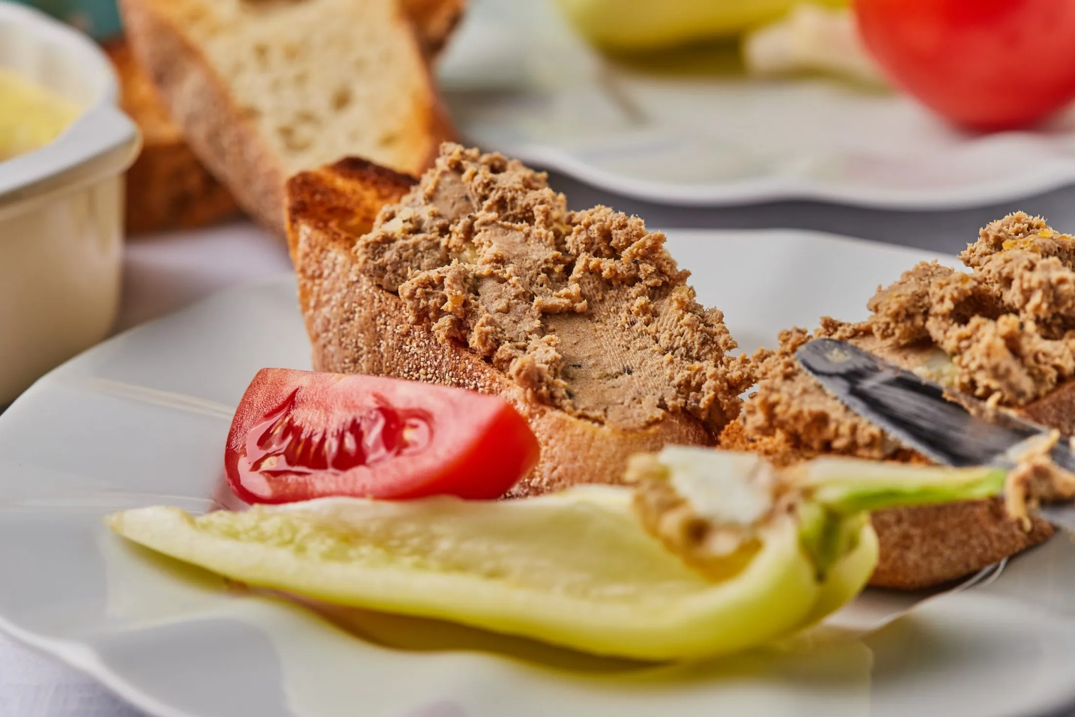 A kacsamáj pástétom elkészítését azzal kezdjük, hogy a májat megtisztítjuk, majd összekeverjük a borssal, a majorannával és a zúzott fokhagymával.