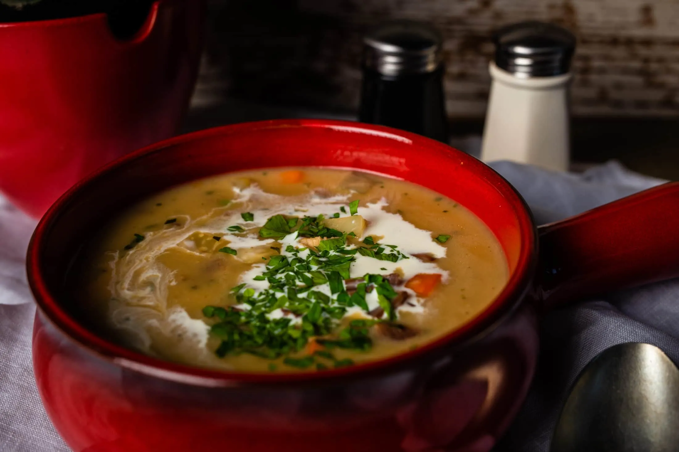 A mustárt elkeverjük a tejszínnel és a keményítővel, majd hőkiegyenlítéssel a léhez adjuk, és pár percig forraljuk. A zöldborsót beleszórjuk a lébe, visszatesszük a zöldségeket és a húst, friss petrezselyemmel ízesítjük, ízlés szerint citrommal savanyítjuk még egy kicsit, és már tálalhatjuk is.