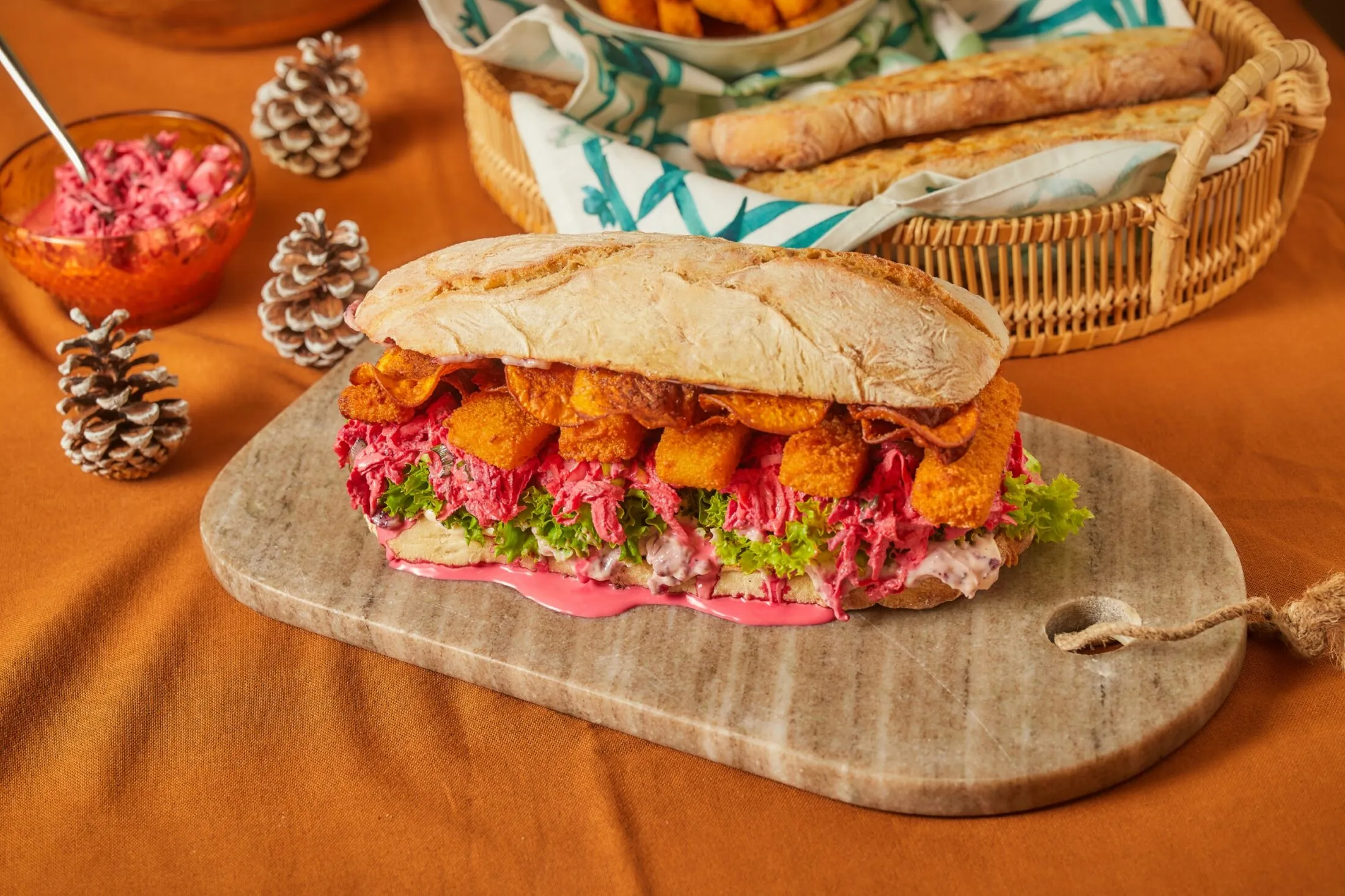 Lepirítjuk a félbevágott ciabattákat, megkenjünk az áfonyás majonézzel, teszünk rá fodros salátát, a tuti céklaslaw-t, jöhetnek a halrudak és az édesburgonyachips is. A ciabatták tetejét is megkenjük a lekváros majonézzel, ráhelyezzük a szendvicsekre és kész is vagyunk!