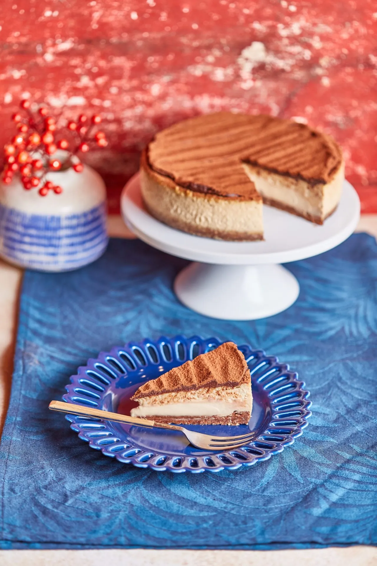Az elősütött formát 2-3 réteg alufóliába csomagoljuk, egy magasabb falú sütőtálba állítjuk, és a forma feléig felöntjük vízzel. Ráöntjük a kávés sajttortaalapot, és 170 fokos sütőben 60 percig sütjük, majd ha langyosra hűlt, egy éjszakára hűtőbe rakjuk.