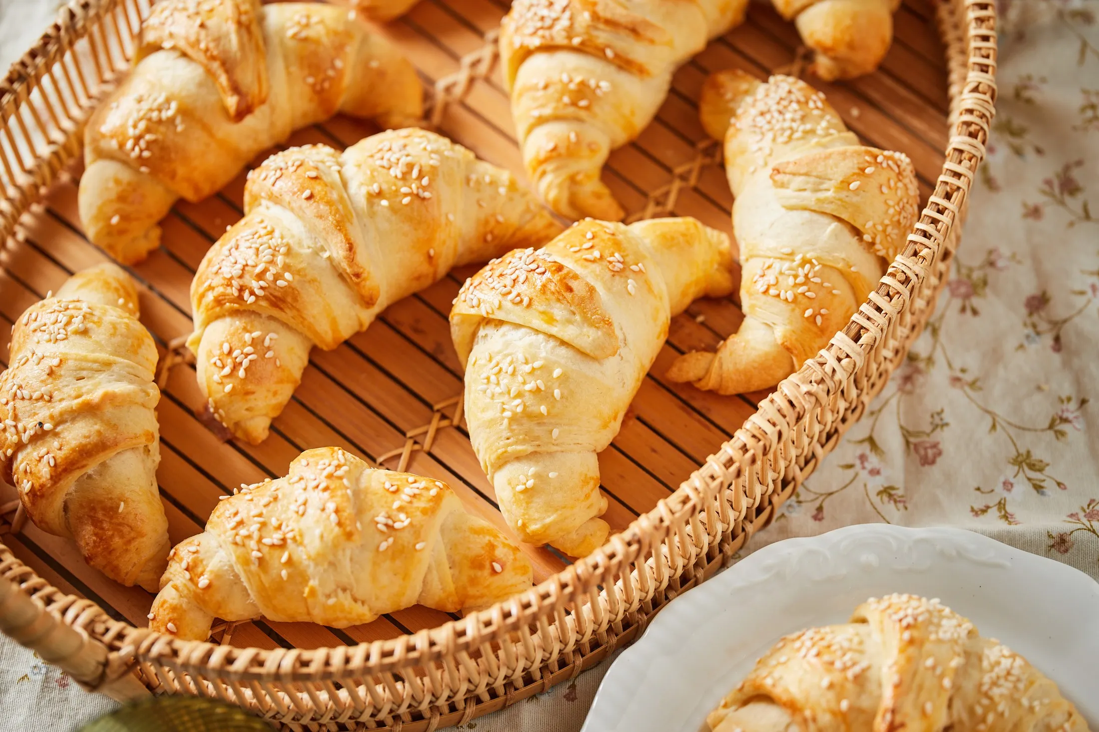 Letakarva további 20 percig kelesztjük a kifliket, majd lekenjük a tetejüket a tejjel elkevert tojássárgájával és megszórjuk szezámmaggal. Mehet is be a 175 fokra előmelegített sütőbe, ahol kb. 30 perc alatt készre sütjük őket.