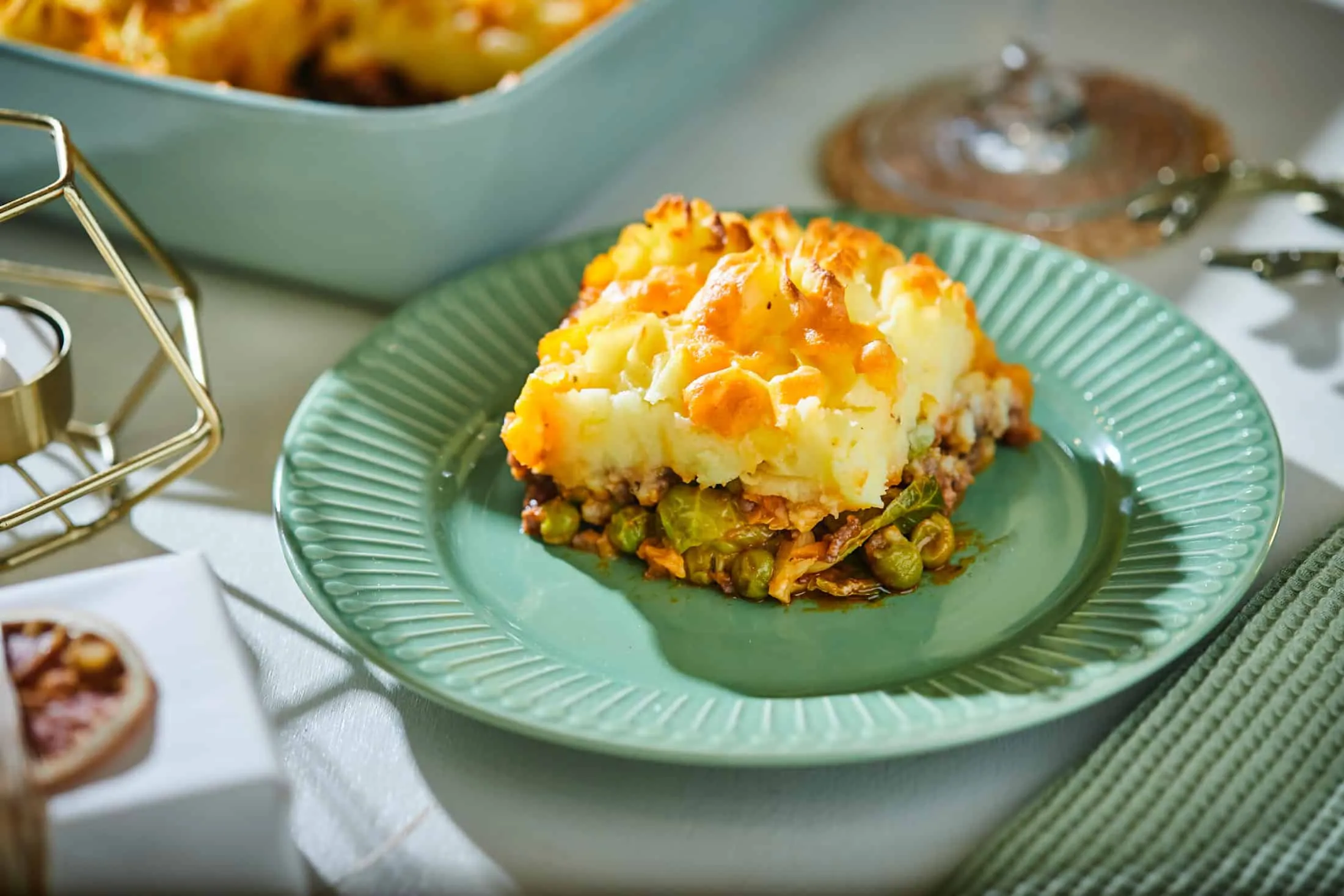 Egy 20 x 30 cm-es tepsi aljába szedjük a kész ragut, rányomkodjuk a habzsákba töltött krumplipürét, megszórjuk a kis kockákra vágott sajttal és 220 fokra előmelegített sütőben 25-30 perc alatt megsütjük. A végén kicsit meggrillezhetjük a tetejét, és kész is.
