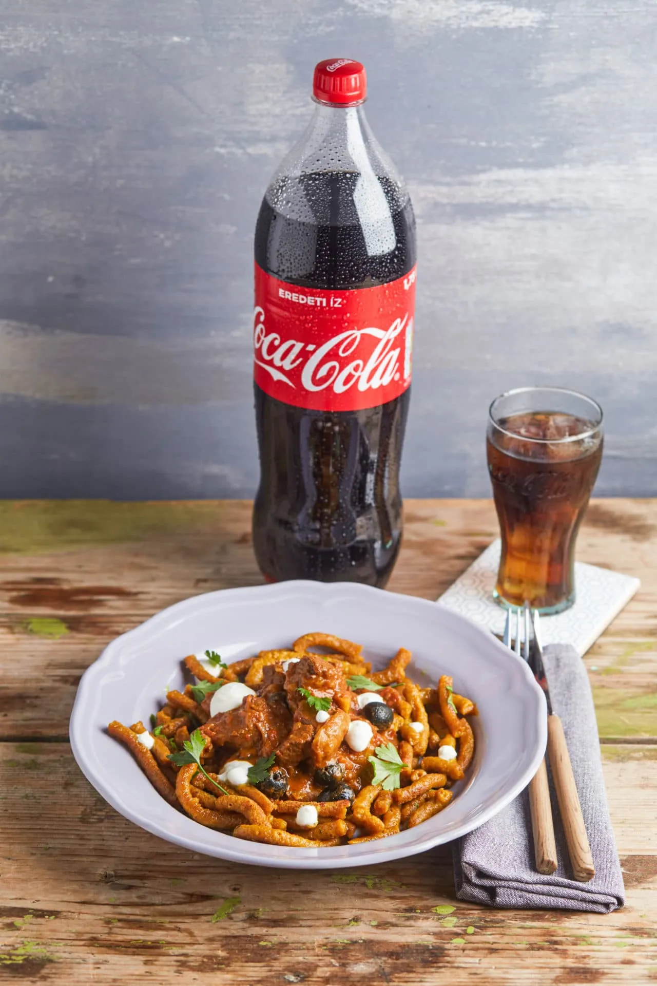 A zöldségeket apró kockára vágjuk, lepirítjuk az olívaolajon, majd rátesszük az összes fűszert, a narancs- és citromhéjat, a húst, és 2-3 percig tovább pirítjuk. Ráöntjük a vörösbort, és addig forraljuk, amíg szinte teljesen el nem párolog róla. Felöntjük 1-2 l alaplével és a darabolt paradicsommal, majd addig főzzük, amíg a hús megpuhul (kb. 2-3 óra). Ha szükséges, pótoljuk az alaplevet. Hozzáadjuk a fekete olajbogyót, és még egyet rottyantunk rajta.