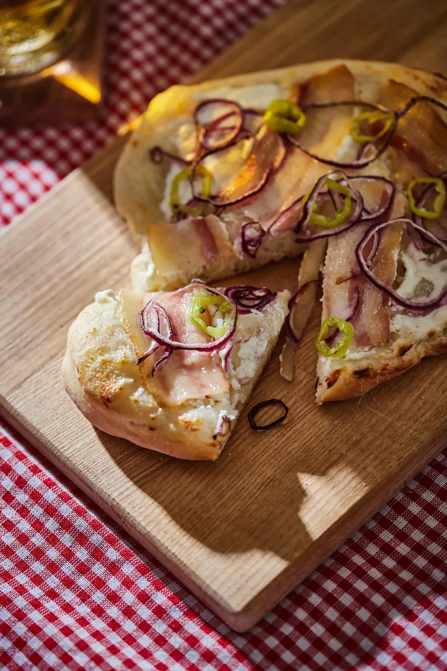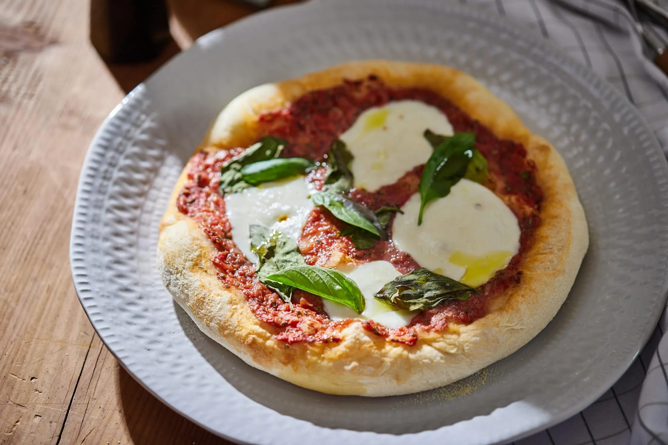 A tésztát 8 részre osztjuk, kiadagoljuk és olajozott tálcán, lefedve hagyjuk kelni még 30 percig. Ezután kukoricaliszttel megszórt felületen kinyújtjuk a tésztát, és megpakoljuk a feltétekkel.