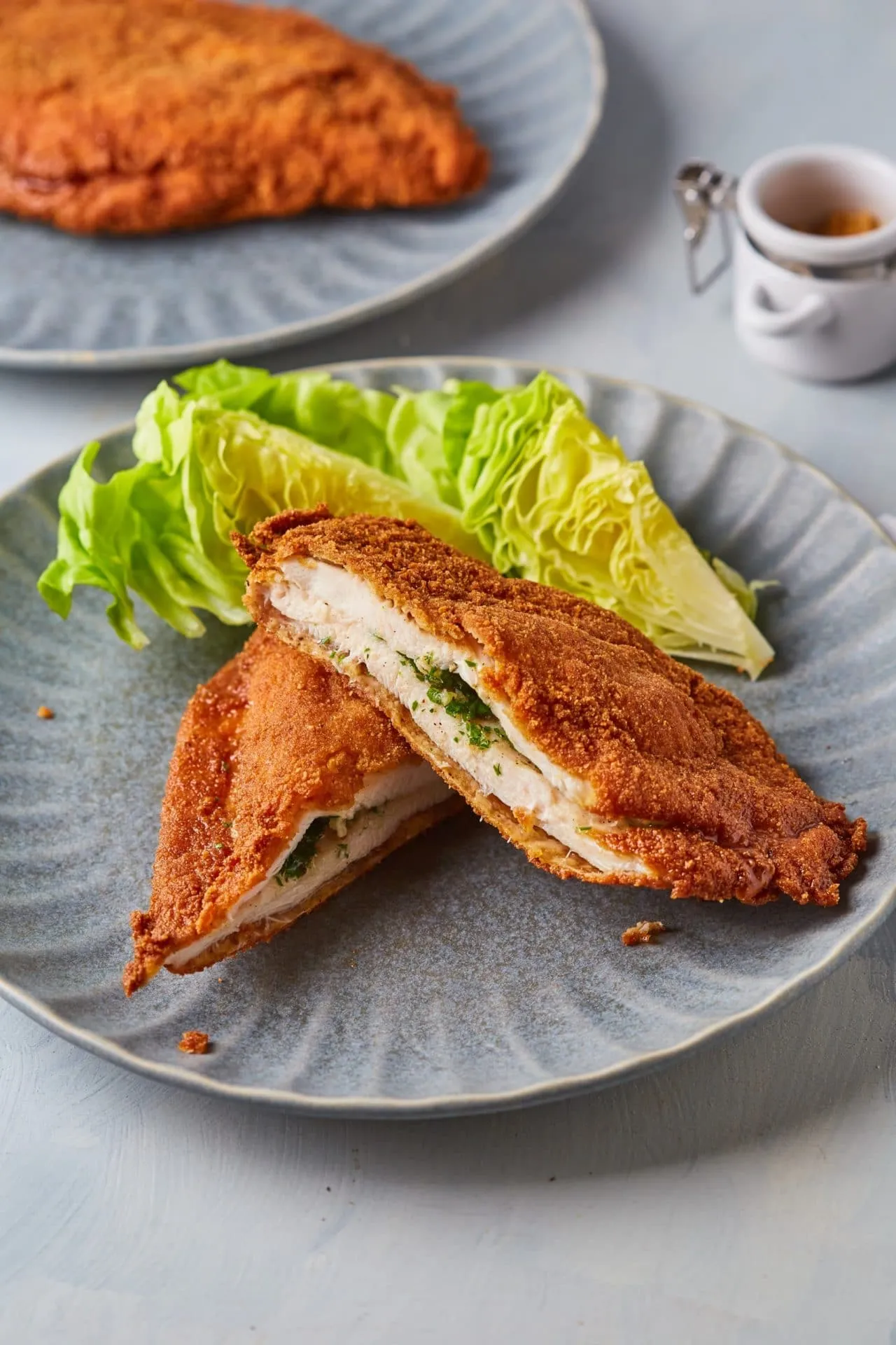 A csirkemelleket óvatosan hosszában félbevágjuk úgy, hogy nem vágjuk át a végét, hanem kihajtjuk, mint egy szőnyeget. Sózzuk, borsozzuk, beletesszük a megszilárdult fűszervajat, és ráhajtjuk a csirke másik felét. Szokásos módon lisztbe, tojásba és zsemlemorzsába panírozzuk duplán, tehát 2-szer. Bő, forró, de nem túl forró olajban kb. 5-8 perc alatt kirántjuk, majd fogyasztás előtt hagyjuk hűlni pár percig. Magában, kenyérrel vagy valamilyen tetszőleges körettel fogyasztjuk.