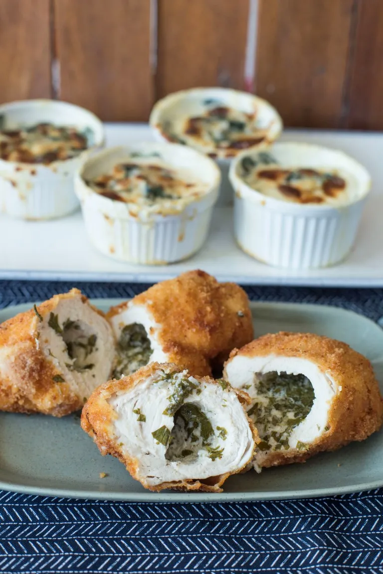 Klasszikkijevijércemell,minispenótosburgonyagratin-nel