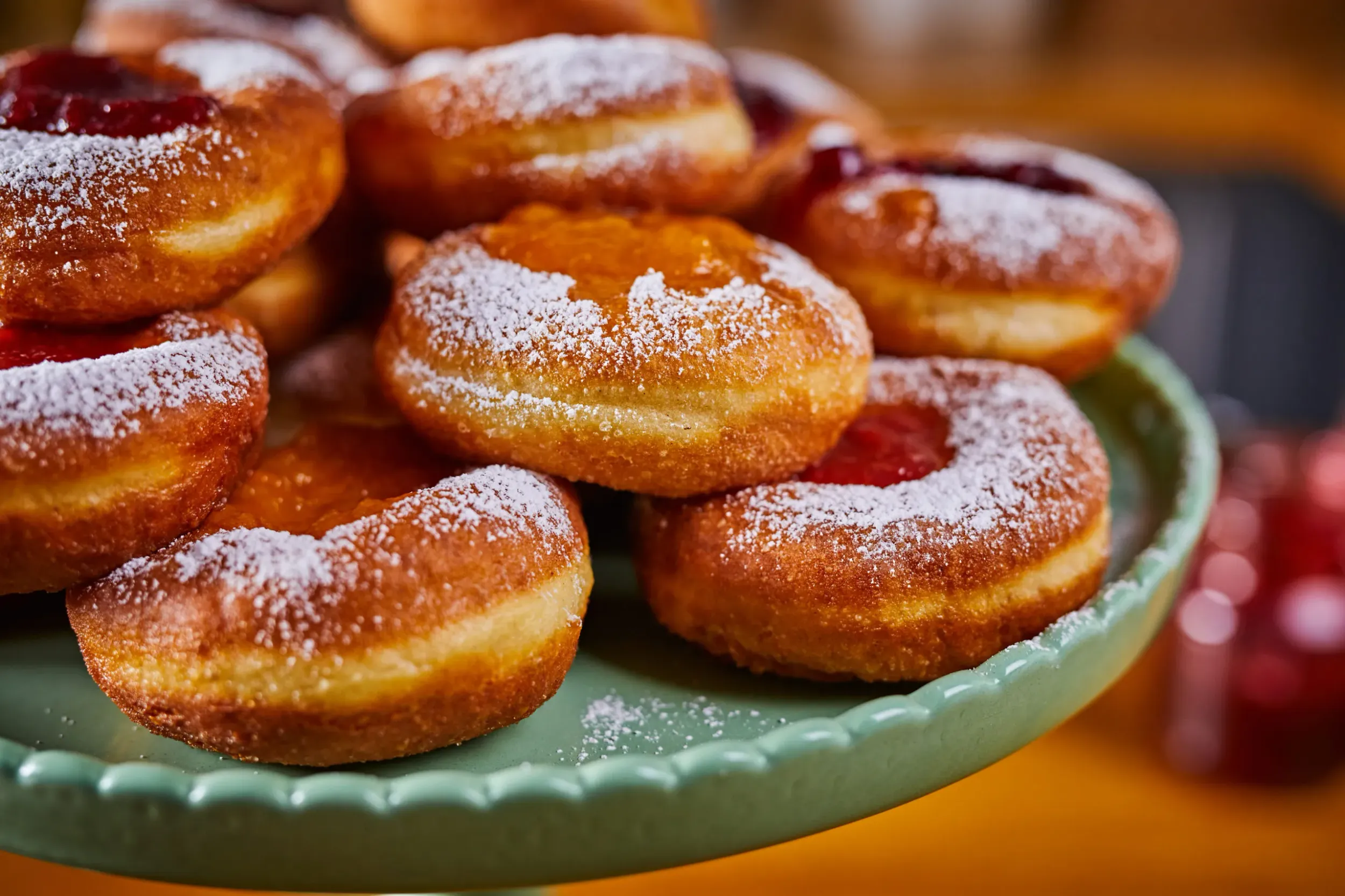 A sütéshez használjunk akkora edényt, hogy 4 fánk elférjen benne, és 4-5 cm magas legyen az olaj. Sütés előtt a tészta közepét benyomkodjuk, majd a benyomással lefelé tesszük a 165-170 fokos, ellenőrzött hőmérsékletű olajba. Fedő alatt 2 percet sütjük, majd megfordítjuk a tésztát, és fedő nélkül újabb 1,5-2 perc alatt készre sütjük.