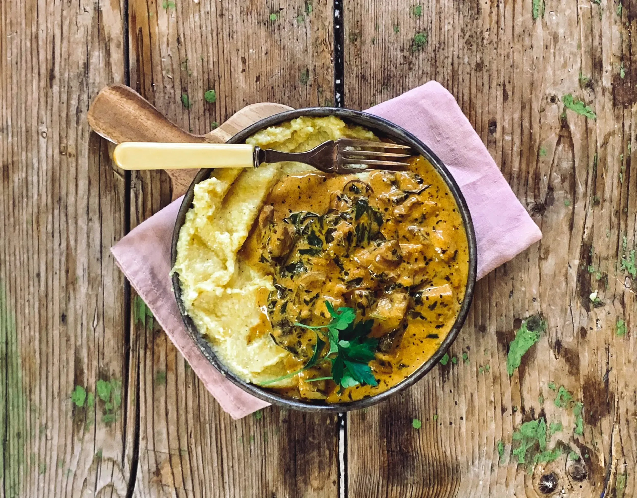 Amikor elkészült, levesszük a tűzről, belerakjuk a bébispenótot, elkeverjük, lefedjük, és hagyjuk állni 5-10 percet. Egyszerű rizst főzzünk mellé, és aprított petrezselyemmel tálaljuk. Krumplipürét vagy rizst adjunk mellé.