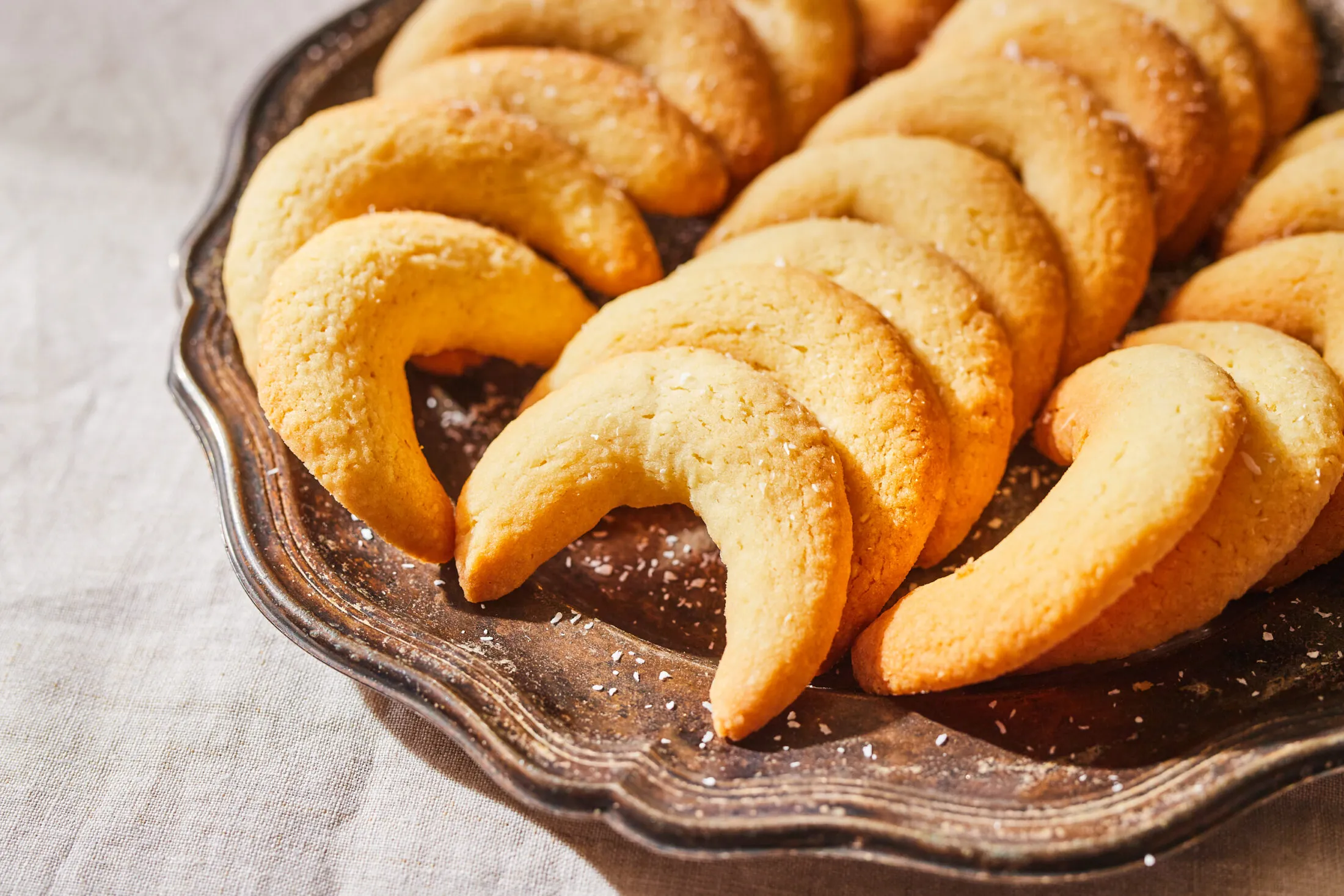 Mindegyiknek kicsit csúcsosra formázzuk a végét, és kiflivé hajlítva tepsibe tesszük őket, majd betoljuk a tepsit a 180 fokra előmelegített sütőbe kb.12 percre. Valószínű nem fog elférni egy tepsin az egész mennyiség, így ezt a műveletet ugyanígy megismételjük. Hagyjuk kihűlni a kifliket, majd tálaljuk, vagy fémdobozba rakjuk, ahol sokáig eláll.
