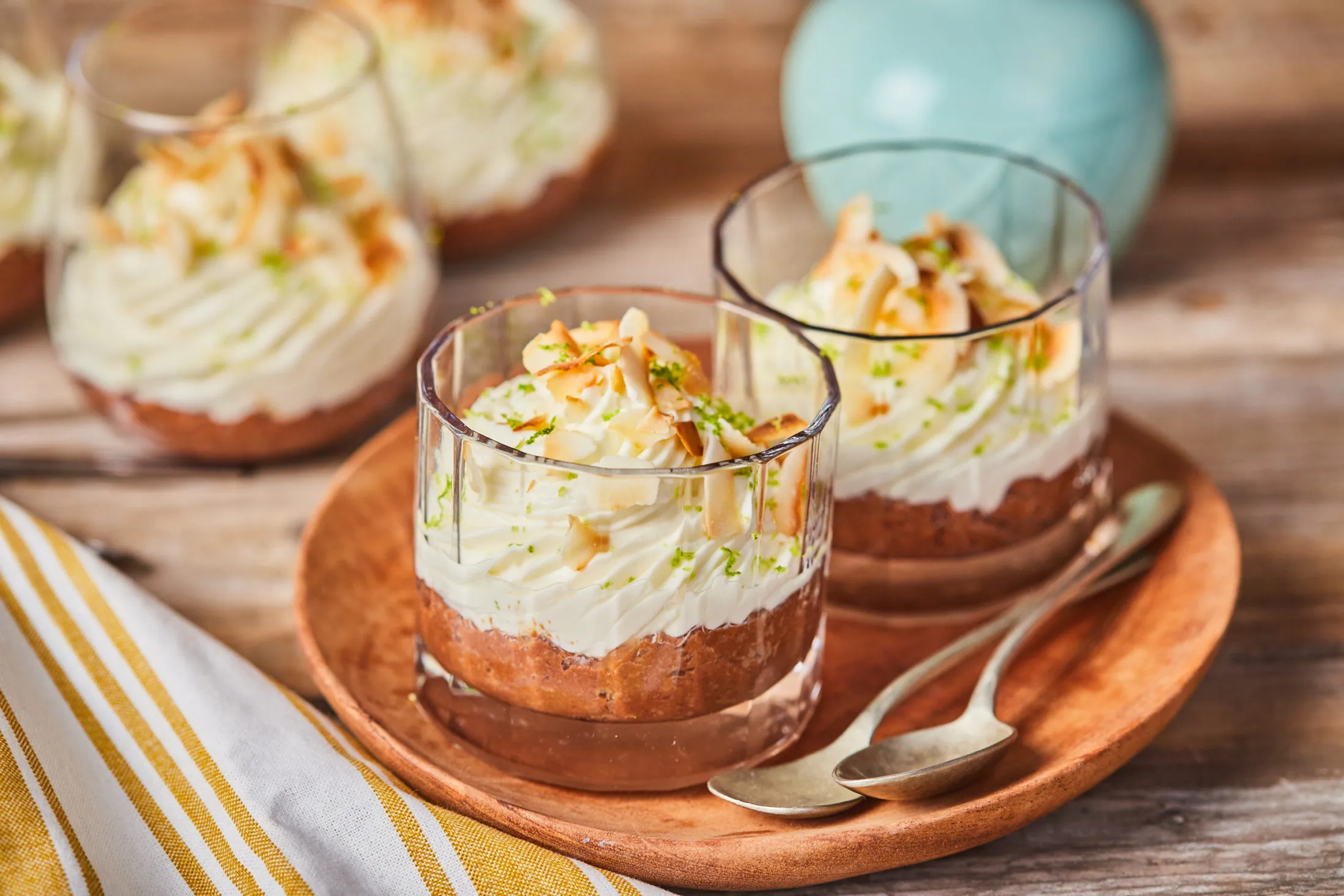 A krémhez a krémsajtot habverő géppel átkeverjük, ezután hozzáadjuk a kókusztejszínt és a porcukrot, majd belereszeljük a lime héját és alaposan elkeverjük. A díszítéshez a kókuszchipset pár perc alatt egy serpenyőben közepes lángon lepirítjuk.