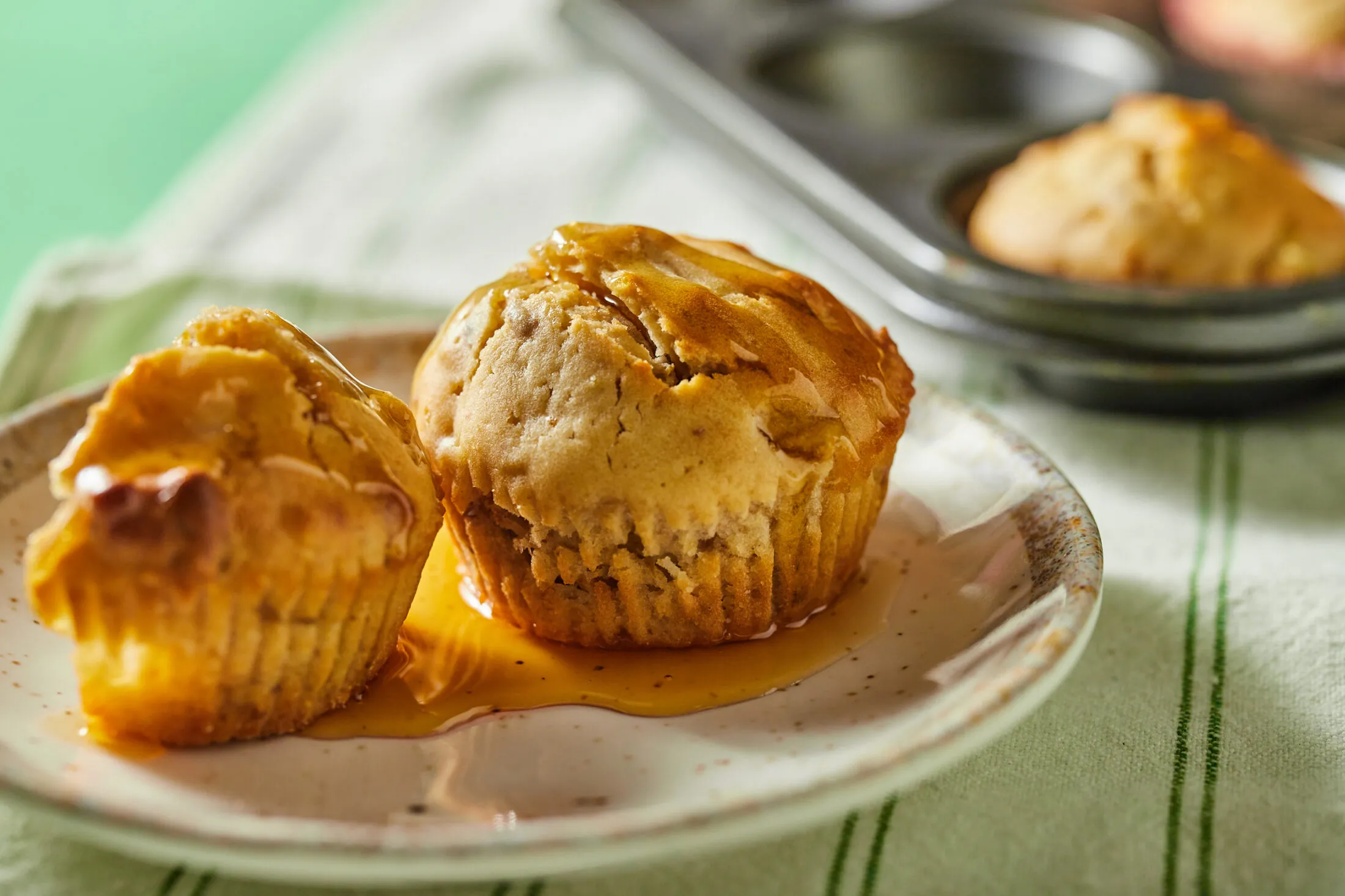 A tésztát fagyiadagoló kanállal egy 12 db-os muffinsütő formába adagoljuk, amelynek a mélyedéseit előzőleg muffinkapszlikkal béleltük ki. 180 fokra előmelegített sütőben 18-20 perc alatt aranybarnára sütjük. A kész muffinokat meglocsoljuk egy-egy kanál karamellsziruppal, és mehet is a falatozás!