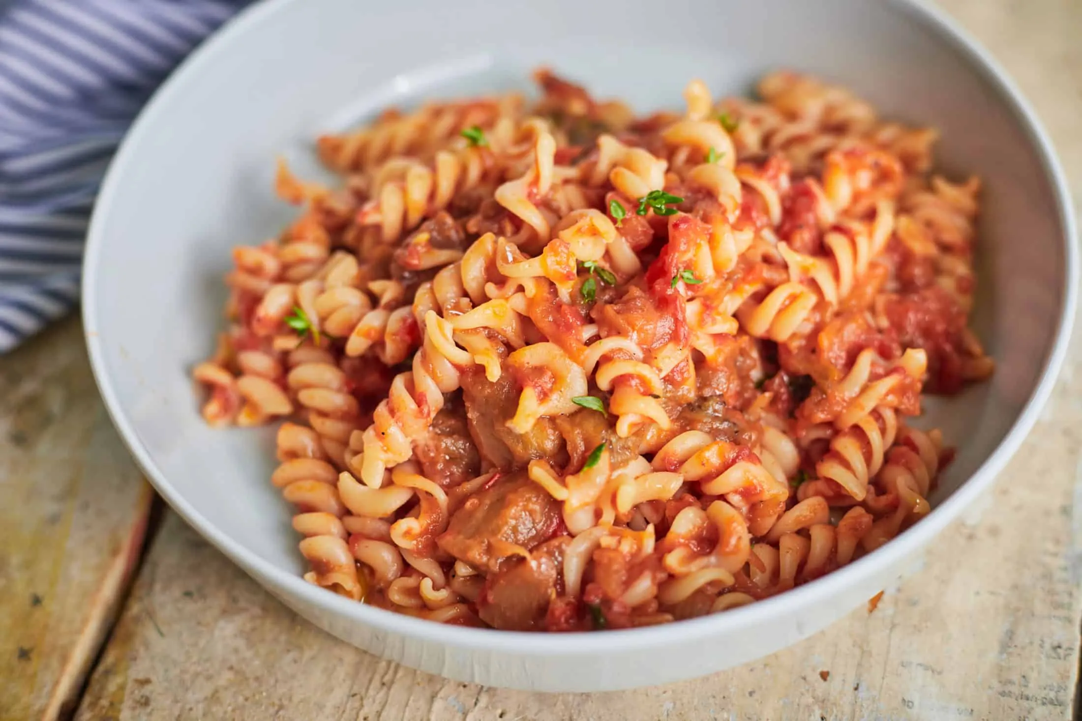 A hagymás alapot sózzuk, borsozzuk, majd rászórjuk a kakukkfüvet és a füstölt paprikát. Felöntjük egy merőkanál tésztafőző vízzel és beleöntjük a darabolt paradicsomot is. Mehet bele a balzsamecet, hozzáadjuk a feldarabolt padlizsánt, és jöhet még egy merőkanál főzővíz. Belekeverjük a leszűrt tésztát, belereszeljük a parmezánt, és beletépkedjük a bazsalikomleveleket. Átforgatjuk és készen is vagyunk.
