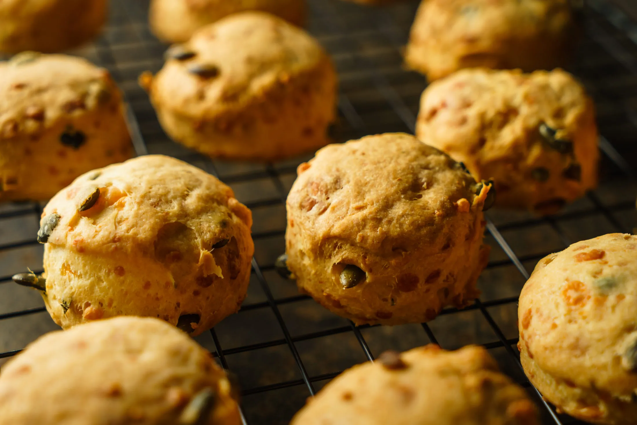 A laktózmentes pogácsa elkészítéséhez a cukrot és a tejfölt elkeverjük, majd belemorzsoljuk az élesztőt. A goudát egy nagy lyukú reszelőn lereszeljük, a kakukkfüvet pedig felaprítjuk. A tökmag kivételével az összes alapanyagot egy robotgépbe tesszük, alaposan kidolgozzuk, majd az utolsó percnél beleszórjuk a tökmagot is. Lefedve meleg, szélvédett helyen 45 percig kelesztjük.