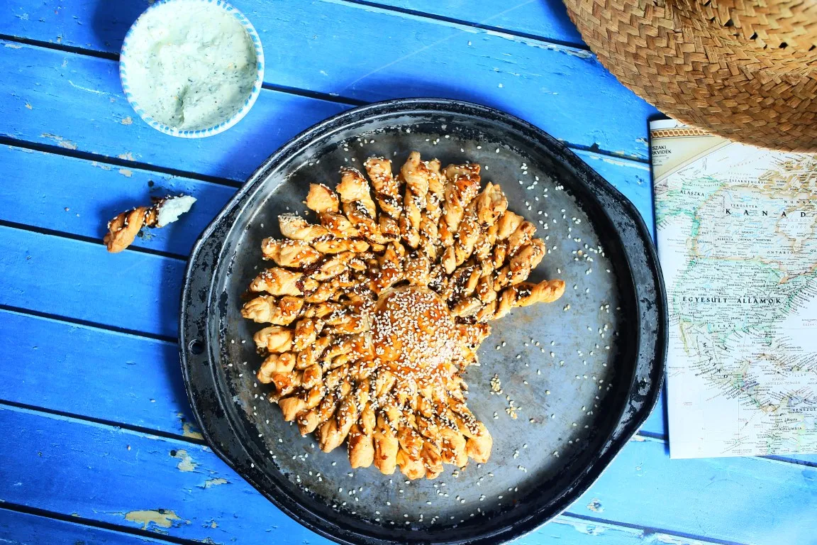 A bolti leveles tésztát bármikor segítségül hívhatjuk, ha valami kreatív partikaját szeretnénk készíteni. Jani sem tett másként, hanem készített egy olívabogyós, aszaltparadicsomos ragut amit két vékony tésztalap közé töltött, kicsit csavart rajta és jól megsütötte.
