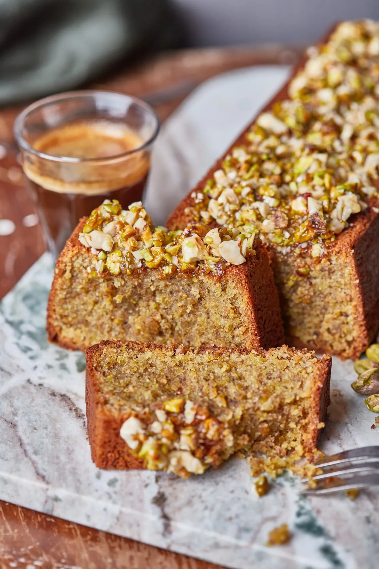 A pisztáciát egy serpenyőben folyamatos kavargatás, mozgatás mellett addig pirítjuk, amíg színt nem kapnak és egy kicsit ropogósabbak nem lesznek, aztán kiborítjuk egy tányérra, és hagyjuk kihűlni. Amikor kihűlt, robotgépben finomra aprítjuk (már-már liszt állagúra). A puha vajat, a vaníliarúd magjait, a lime reszelt héját és a cukrot egy elektromos habverővel kihabosítjuk, majd a tojásokat egyesével hozzáadagoljuk, csak akkor beletéve a következőt, ha teljesen eldolgoztuk az előzőt. Ezután hozzáadjuk a mandulalisztet, a lisztet és a pisztáciából készült darálmányt, és jól eldolgozzuk.