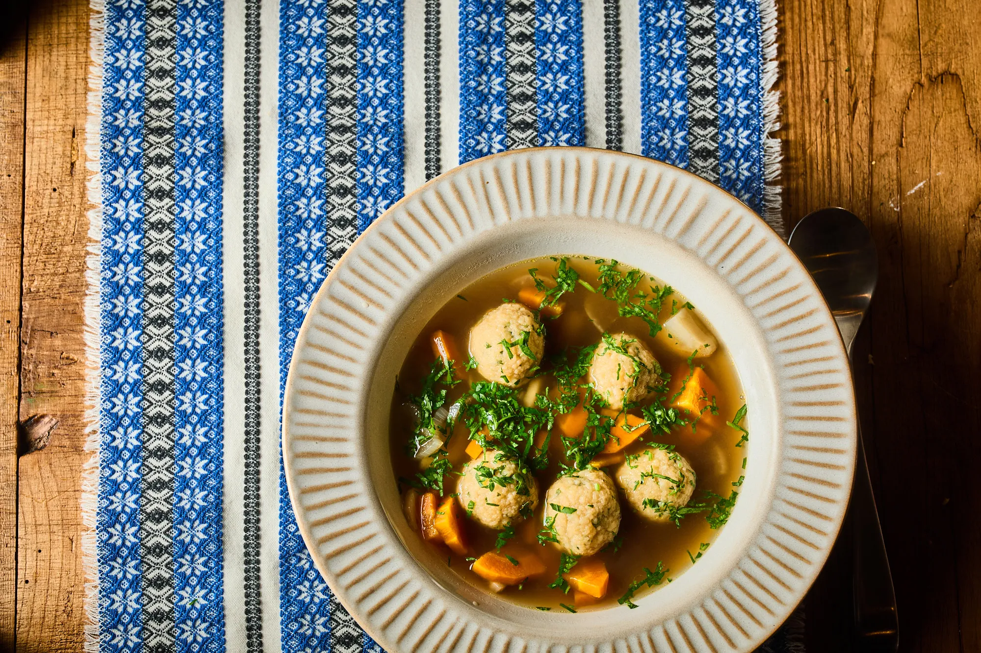 Egy tiszta ízű, egyszerű leves, ahol a zöldségek édessége és a puha maceszgombóc együtt adja a valódi komfortot.