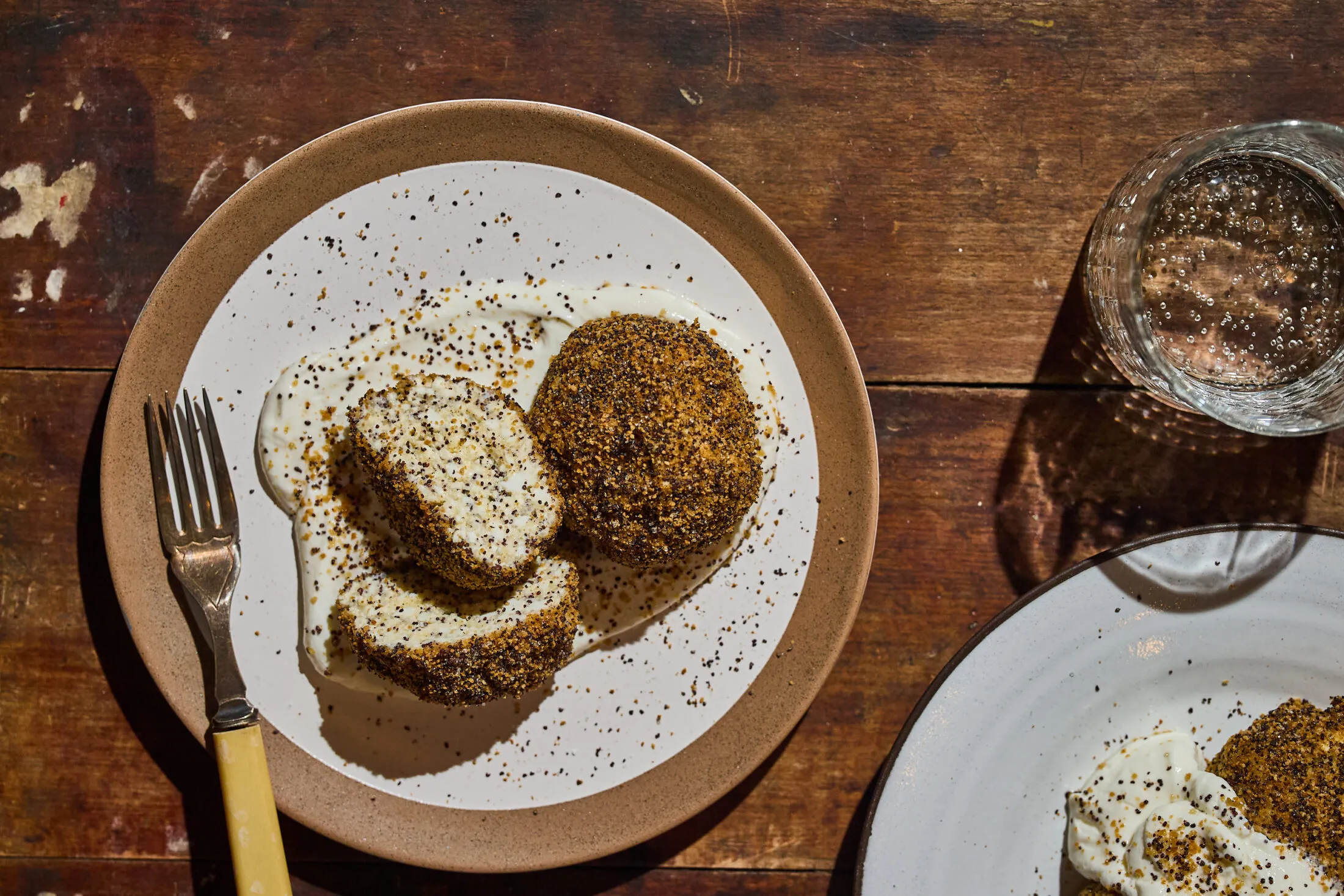 Szilvás édesburgonya-gombóc fahéjas joghurttal és pekándióval