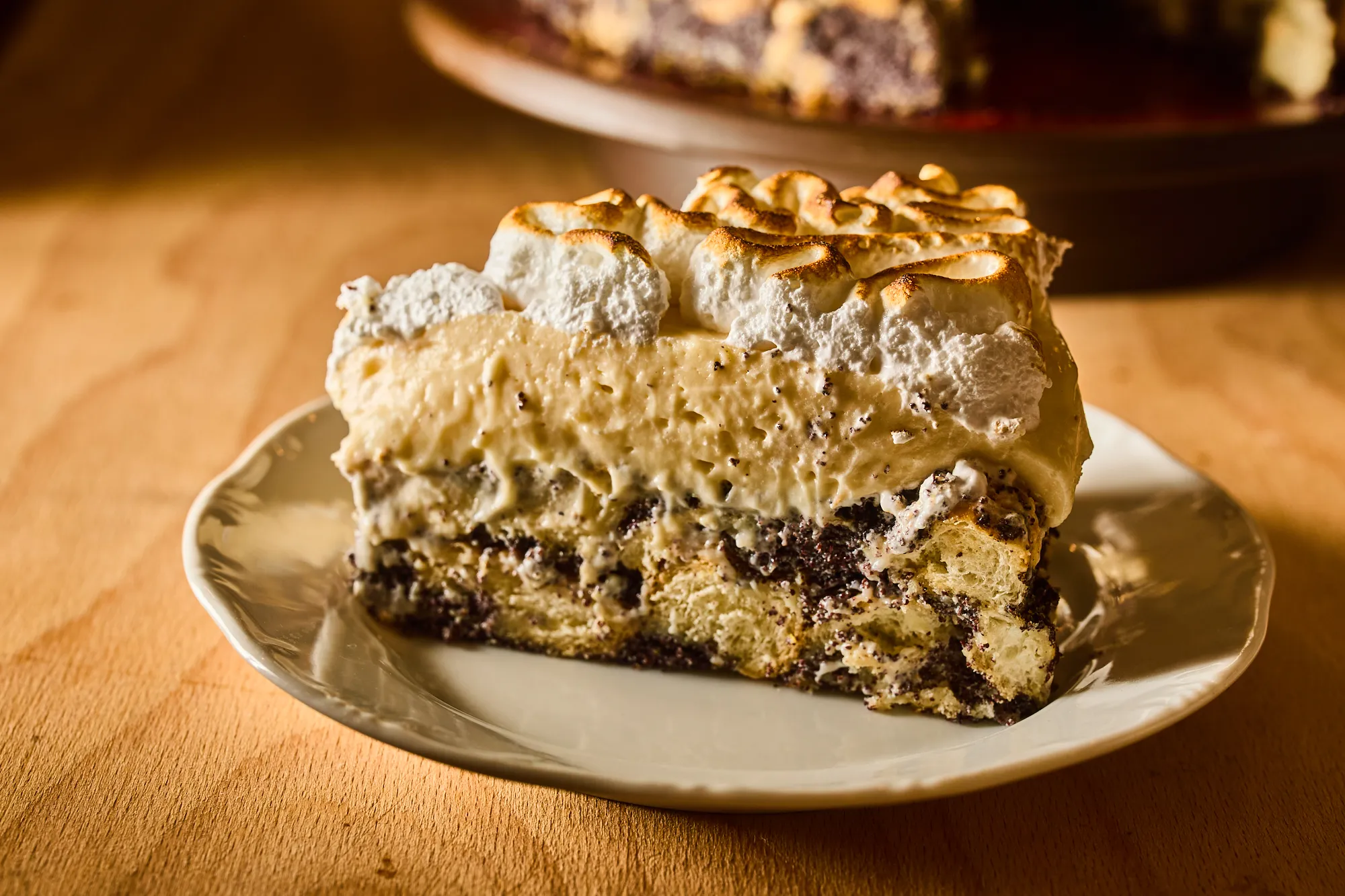 A hagyományos mákos guba elegáns tortává alakul, ahol a mákos alap és a könnyed krém tökéletesen kiegészítik egymást.