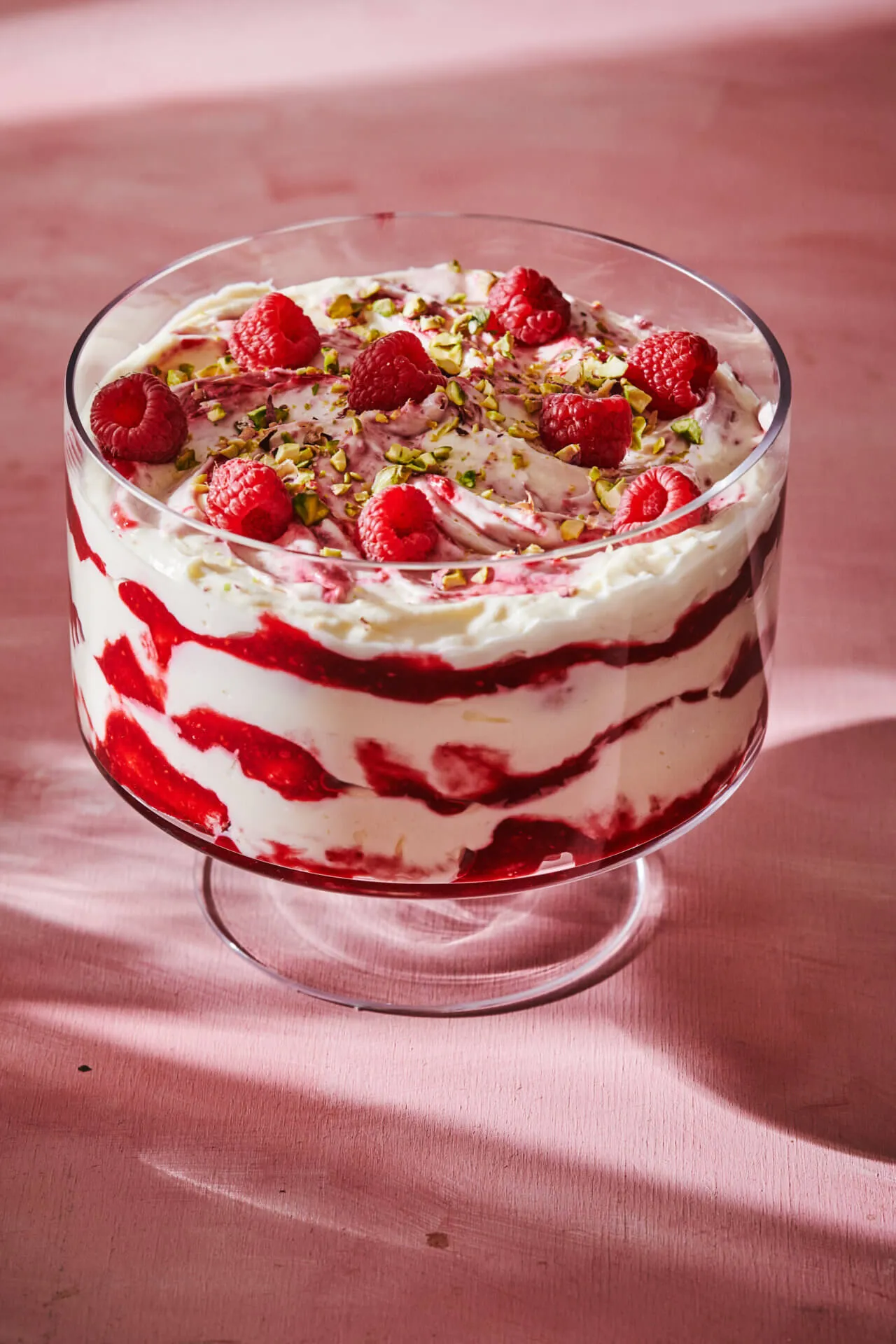 A süti tetejére rádobáljuk a málnaszemeket, és megszórjuk a pisztáciával. Tálalás előtt jól lehűtjük.