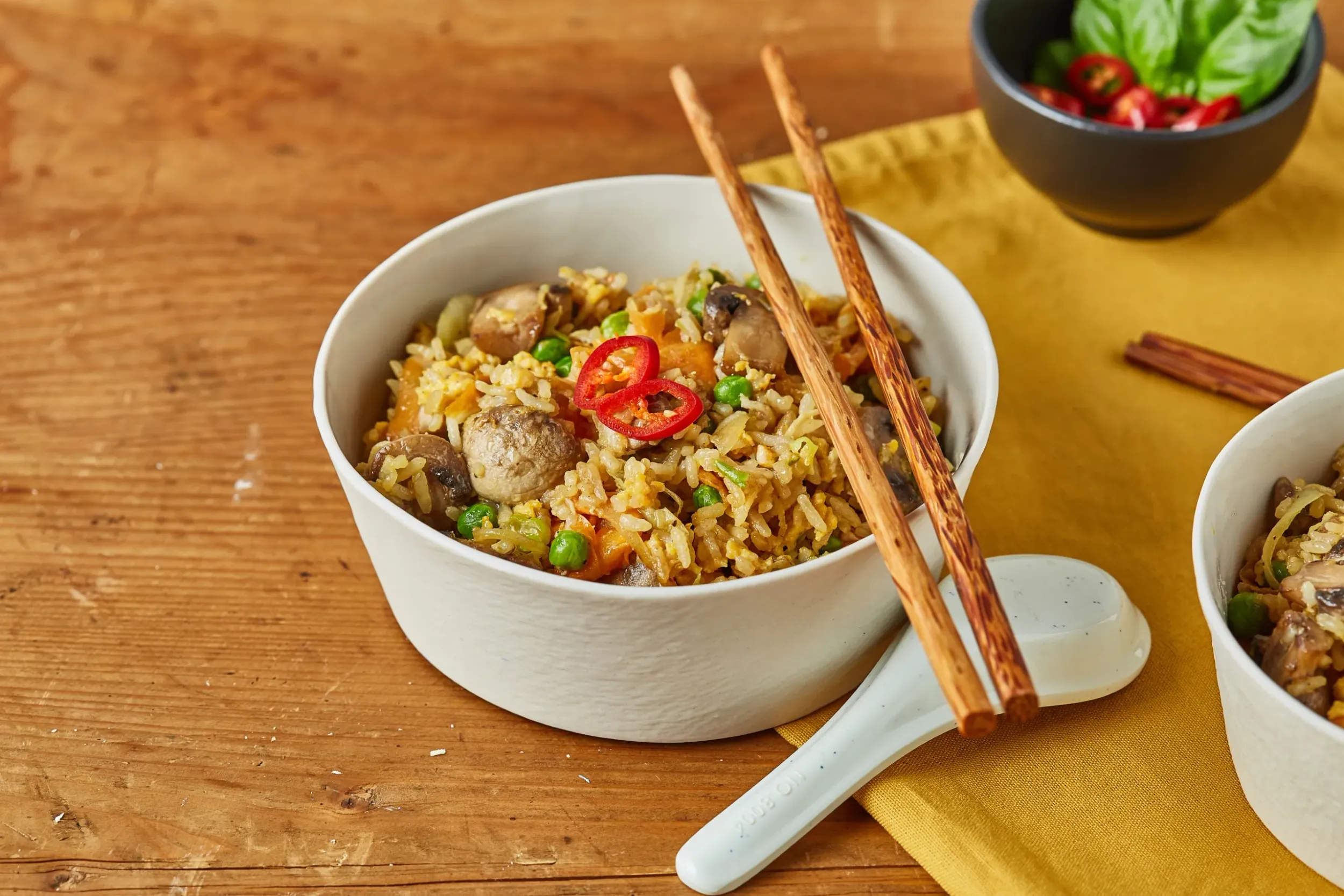 A pirított rizshez egy wokot vagy egy nagyobb serpenyőt szárazon felforrósítunk.