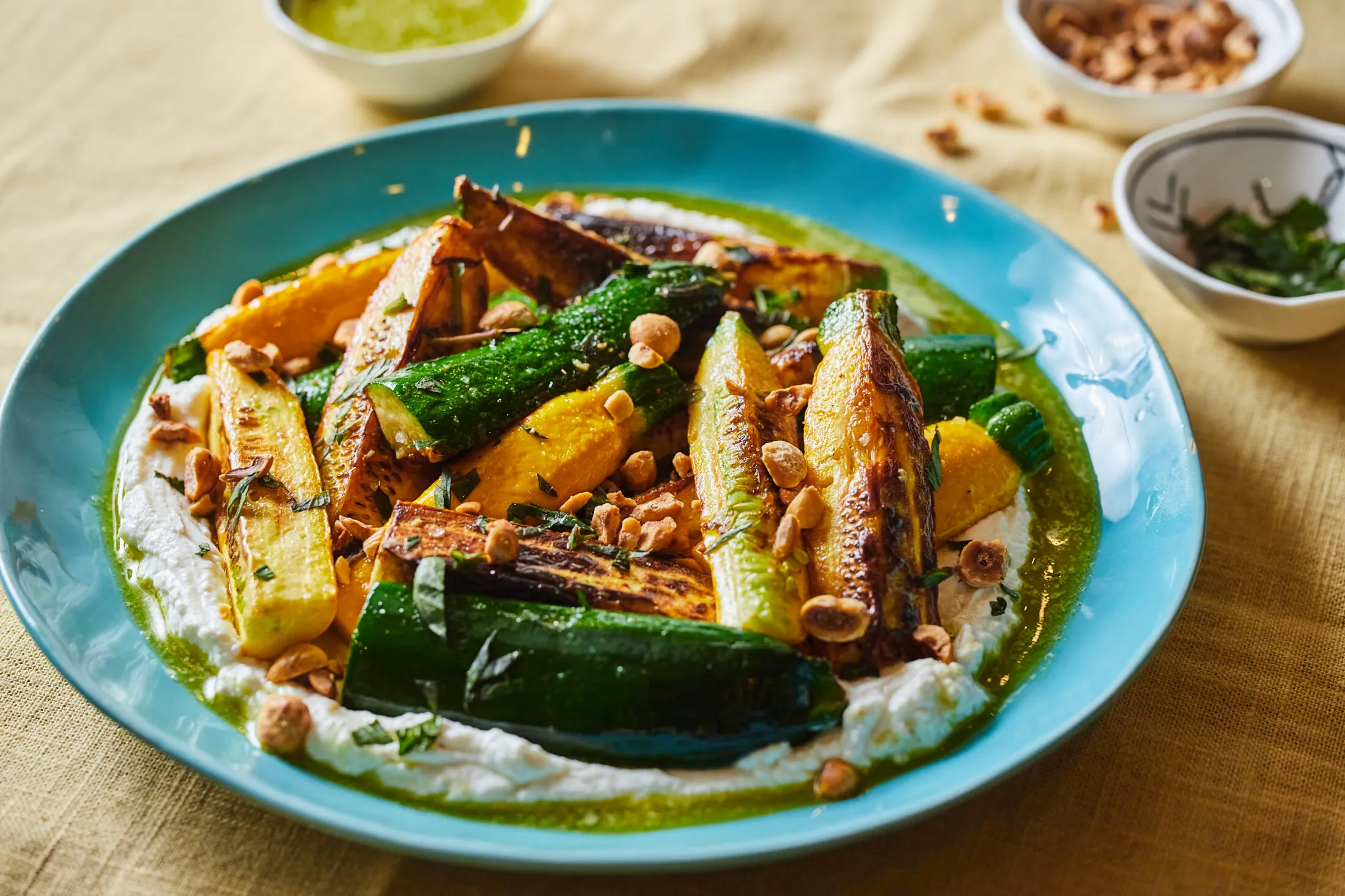 Tálaláskor a tányérra kenjük a ricottakrémet, erre mehet a sült cukkini, meglocsoljuk a marináddal, megszórjuk az aprított török mogyórval, és készen is vagyunk. Szerintem lepénykenyérrel tunkolva a legjobb, de húsok mellé is tökéletes köretopció lehet.