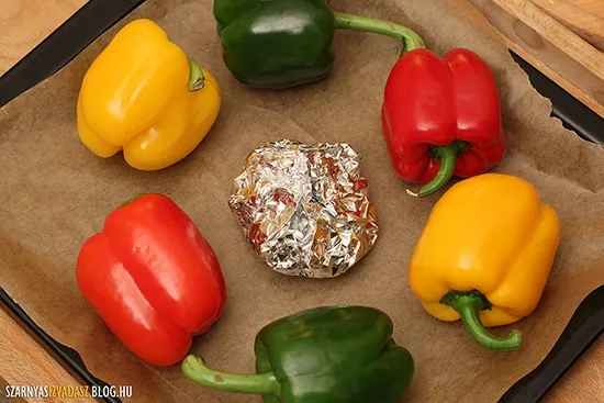 De nyugalom, az égett héjat el fogjuk távolítani, a paprikahús viszont egy fantasztikus füstös ízzel fog így gazdagodni. Sütés közben néha óvatosan megforgatjuk a paprikákat, hogy egyenletesen süljön-égjen meg a paprika héja. Bónuszként pedig a sütőajtó nyitogatásától isteni sültpaprika illat kezd majd terjengeni a konyhánkban.