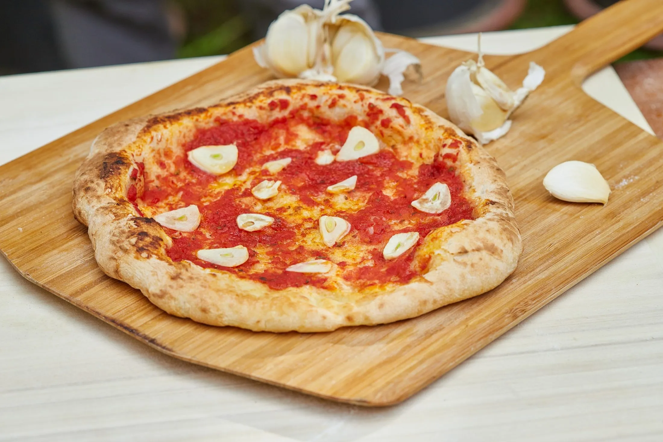 A Marinara pizzához az ízesített paradicsommártás felhasználása teljesen egyezik az előző ajánlással. A szétterített mártás tetejére vékony fokhagymaszeleteket teszünk, majd meglocsoljuk olívaolajjal, és készre sütjük.