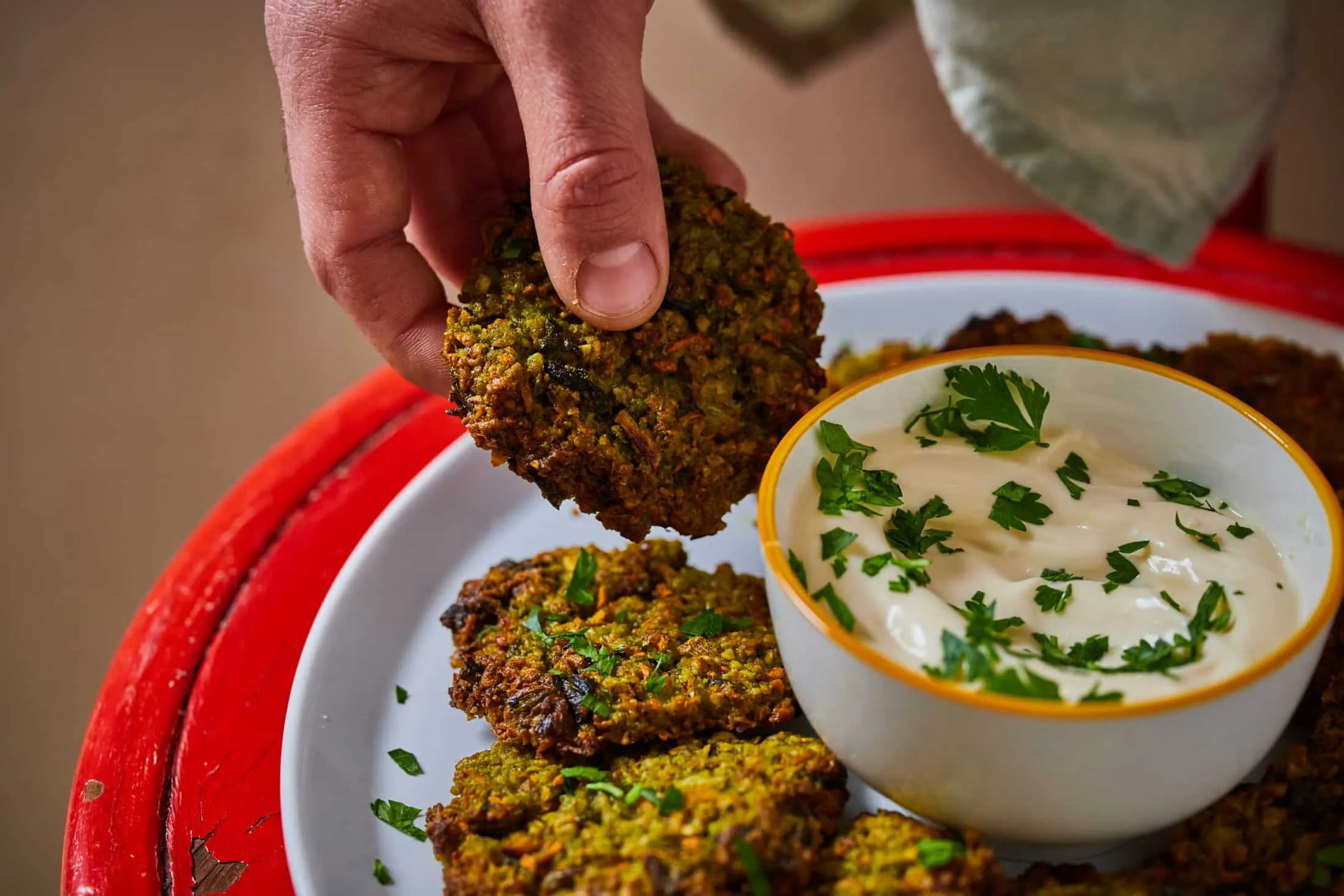 Egy tepsit kibélelünk sütőpapírral, a medvehagymás fasírtgolyókat ujjnyi vastag kör alakúra kilapítjuk, lekenjük a maradék olívaolajjal, majd 180 fokra előmelegített sütőben 30 perc alatt készre sütjük őket.
