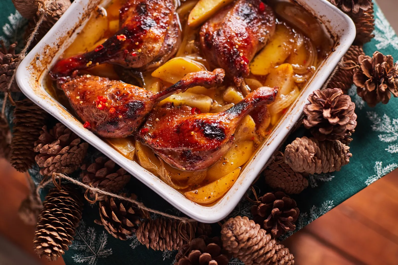 Konfitált kacsacomb zöldséges-krumplis rétessel