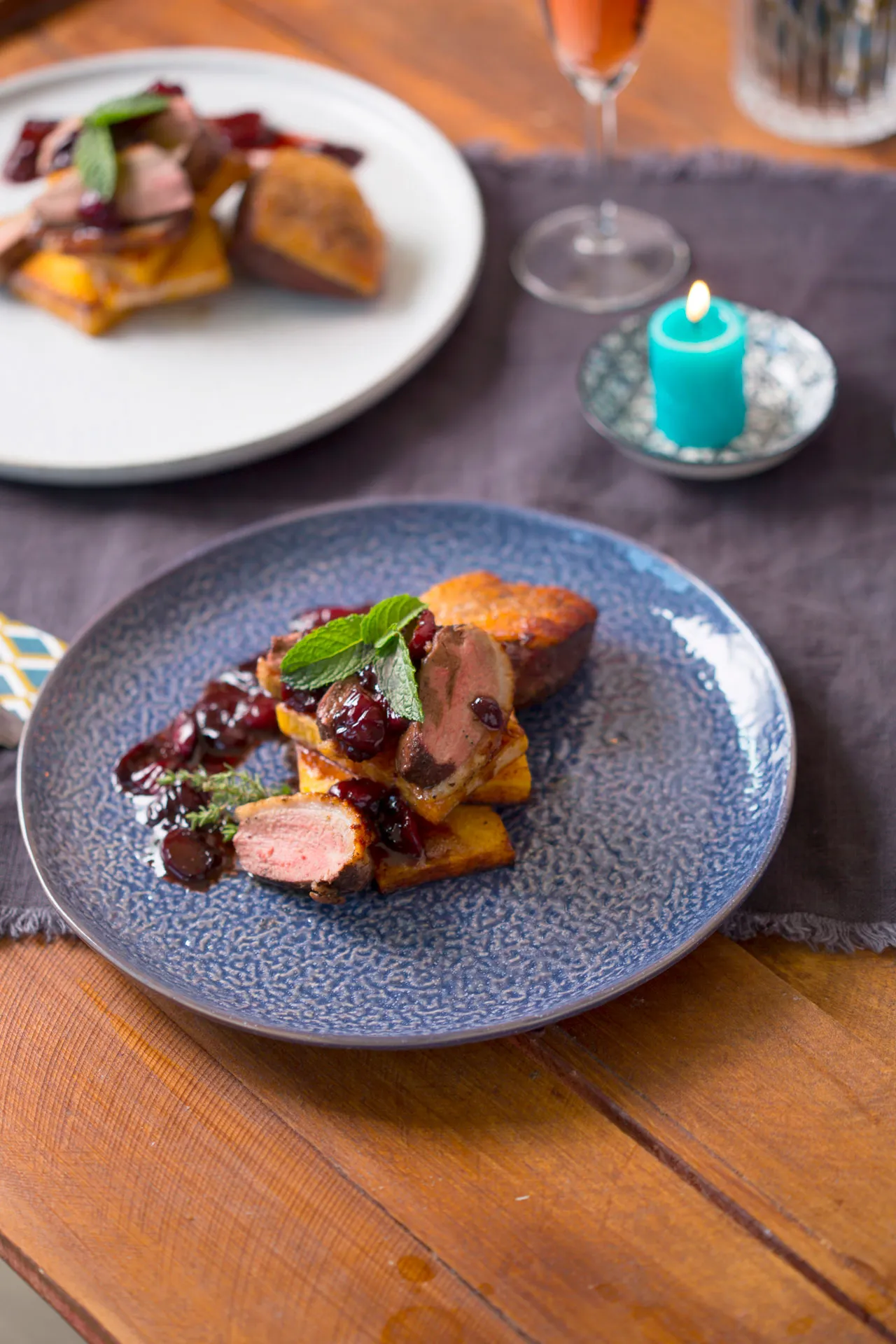 Mézzelfényezettkacsamellkarórépávaléspácoltcseresznyével