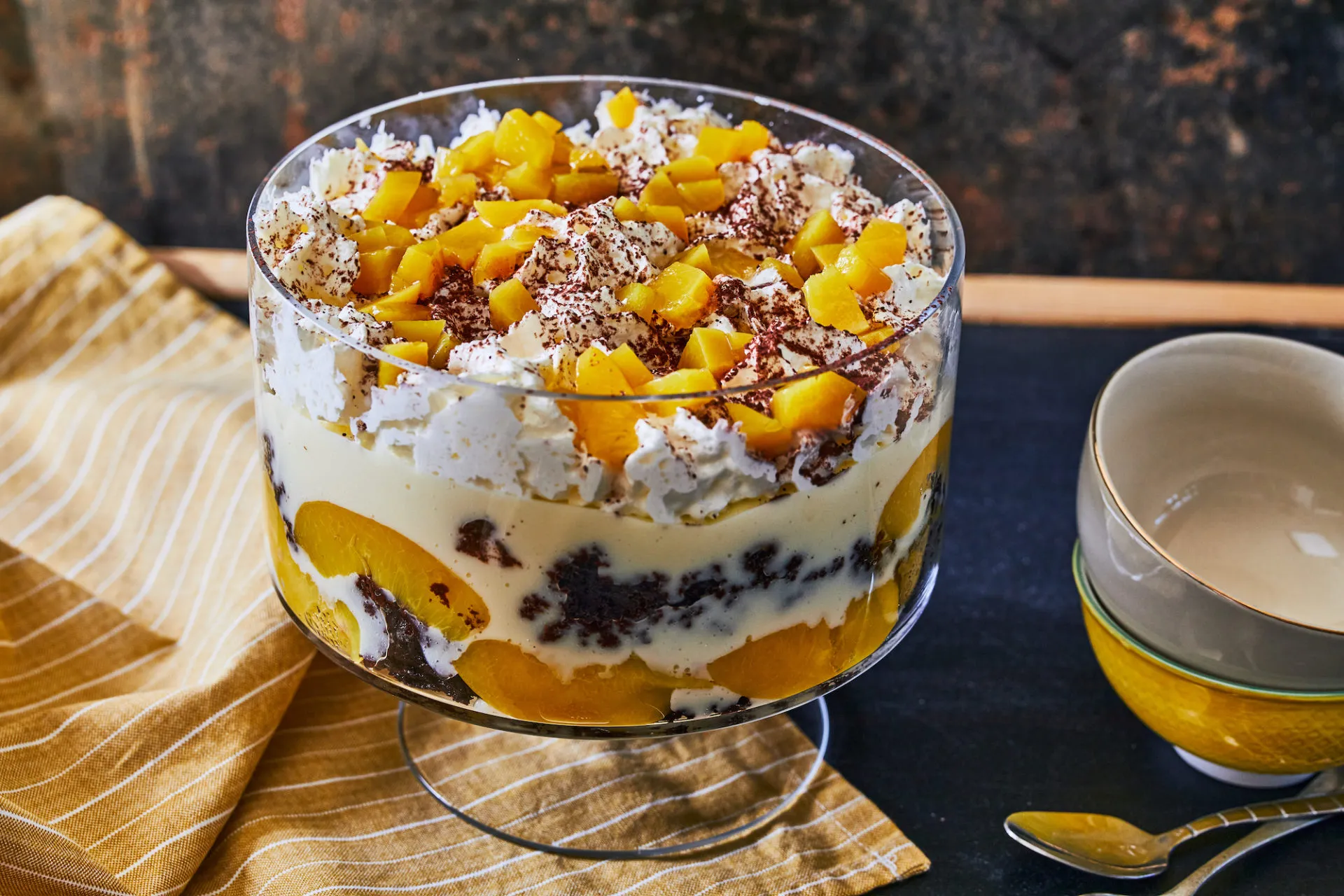 A mikrós barackos trifle piskótájához a hozzávalókat a csokipasztilla kivételével egy robotgéppel krémesre zúzzuk, majd belekeverjük a csokipasztillát is. Egy kb. 20x15 cm-es mikrózható sütőformába öntjük, és a mikróban 800 W-on 4,5 perc alatt készre sütjük.