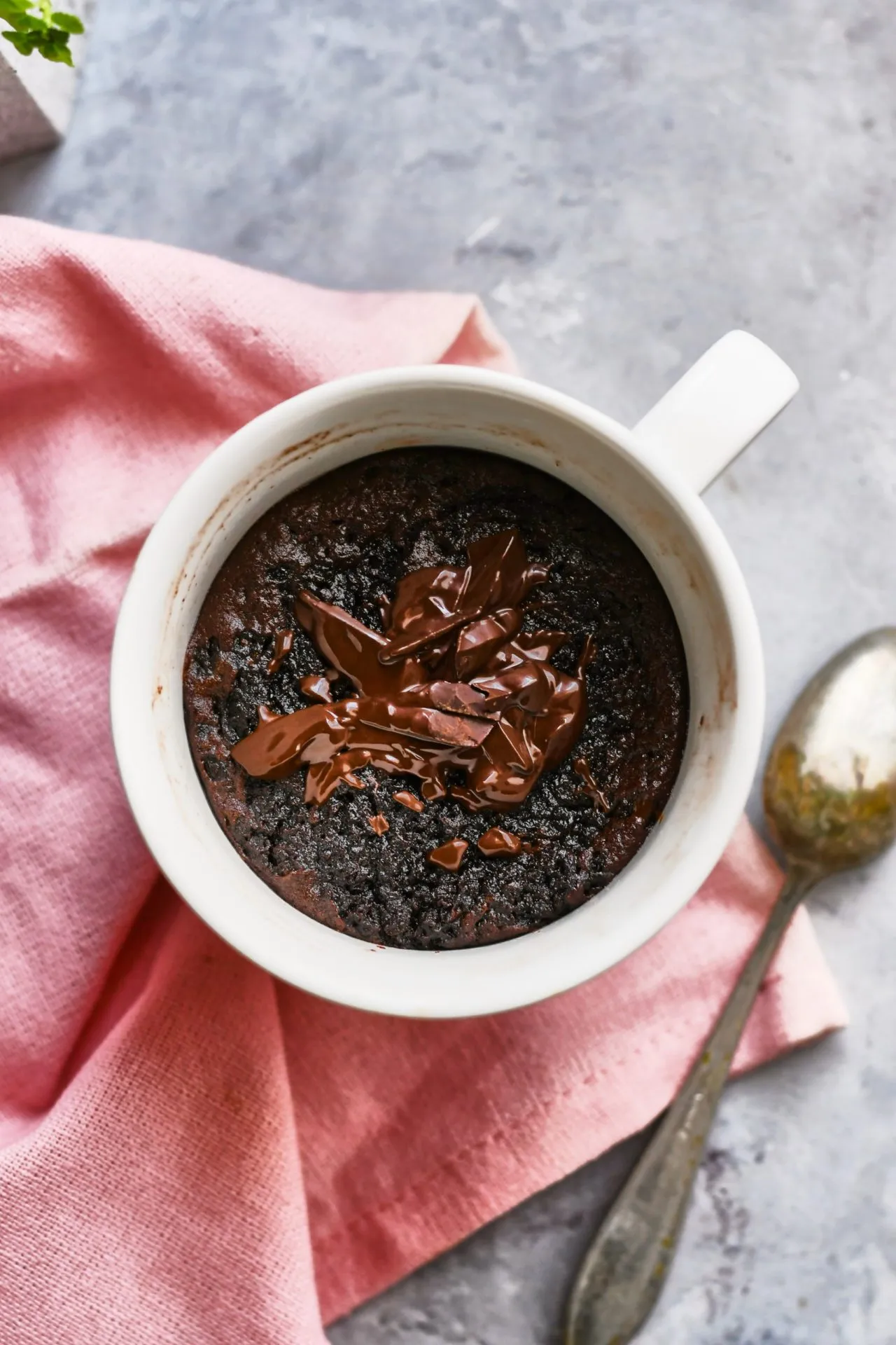 A vizet elkeverjük a puha vajjal, hozzáadjuk a kis darabokra vágott étcsokit és a többi hozzávalót. Alaposan elkeverjük, egy bögrébe töltjük, és mikróba dobjuk, magas fokozatra, 60 másodpercre (1000-1100 W). Ekkor még picit krémes, lágyabb lesz a belseje! Isteni finom, ha még melegen kevés darabolt csokit raktok a tetejére!