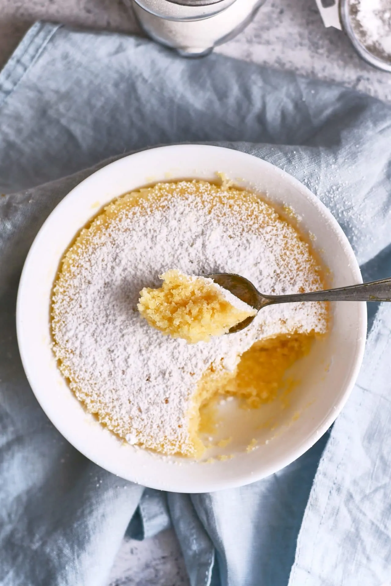 A hozzávalókat alaposan összekeverjük, és egy müzlistálba kanalazzuk. Maximális fokozatra (kb. 1000-1100 W) kapcsoljuk a mikrót, berakjuk a tálat, és kb. 3-4 percig sütjük a sütit. Porcukorral, citromkrémmel vagy vaníliafagyival szupergyors és finom süti.