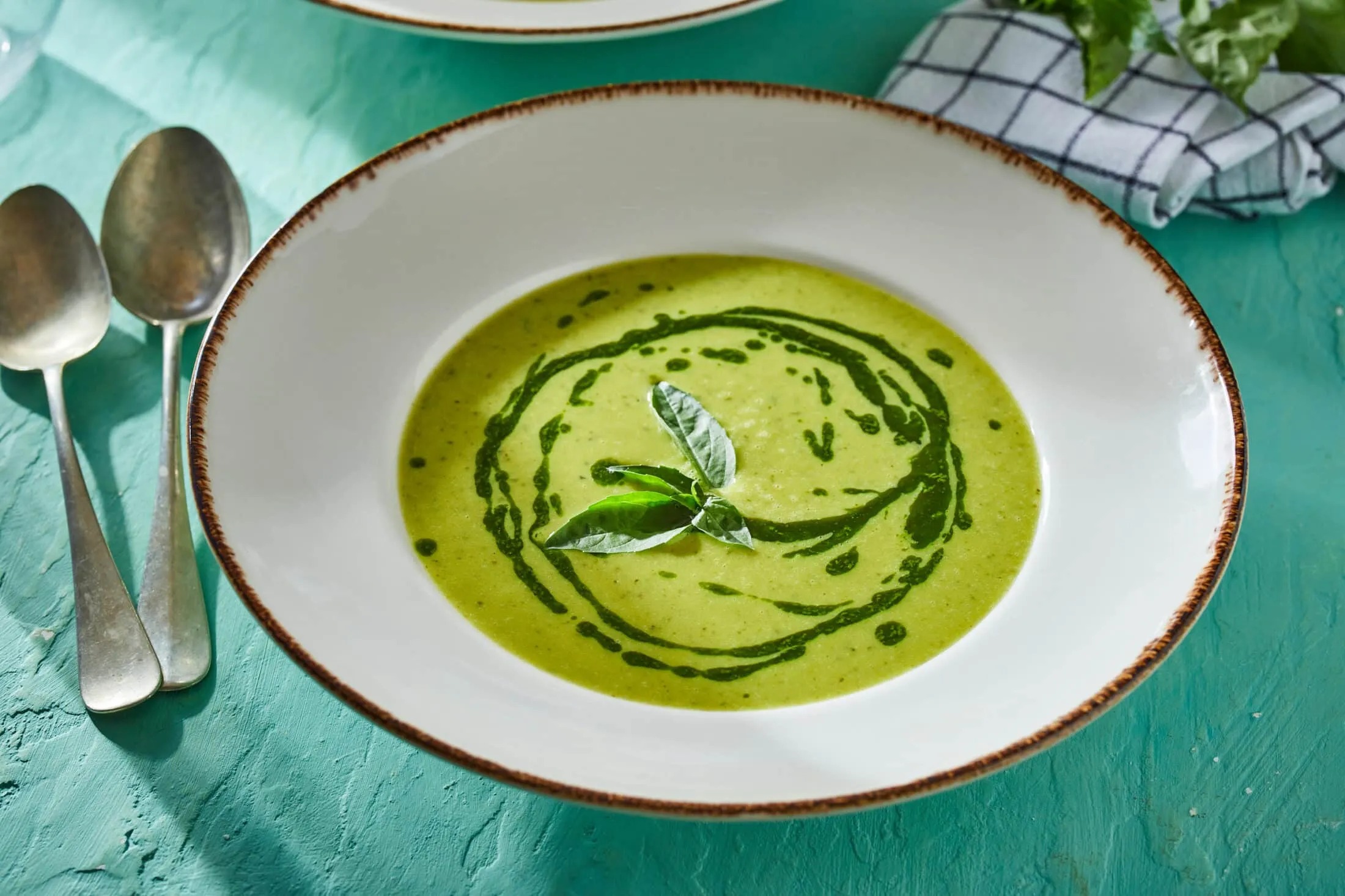 Mikor megfőtt a burgonya és a spárga, hozzádobjuk a feldarabolt bazsalikomot, belefacsarjuk a citrom levét, majd egy turmixgépbe kanalazzuk, és krémesre turmixoljuk. A levest a bazsalikomolajjal meglocsolva tálaljuk.