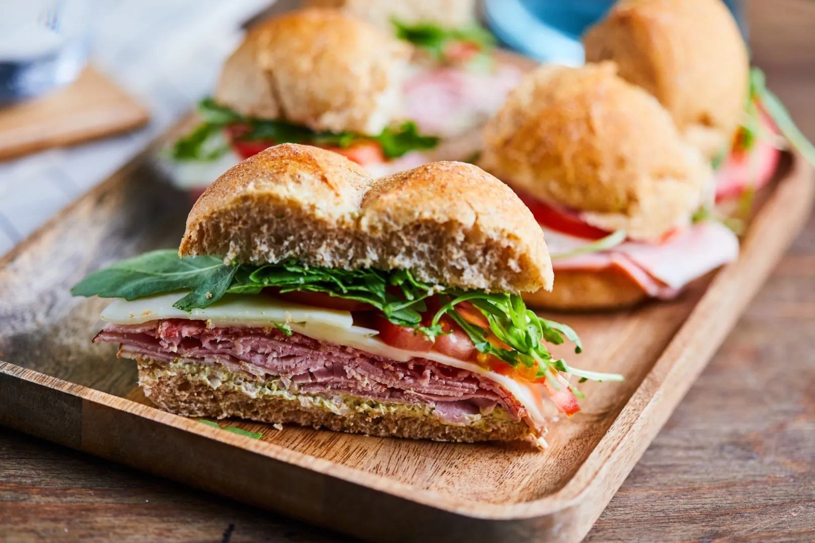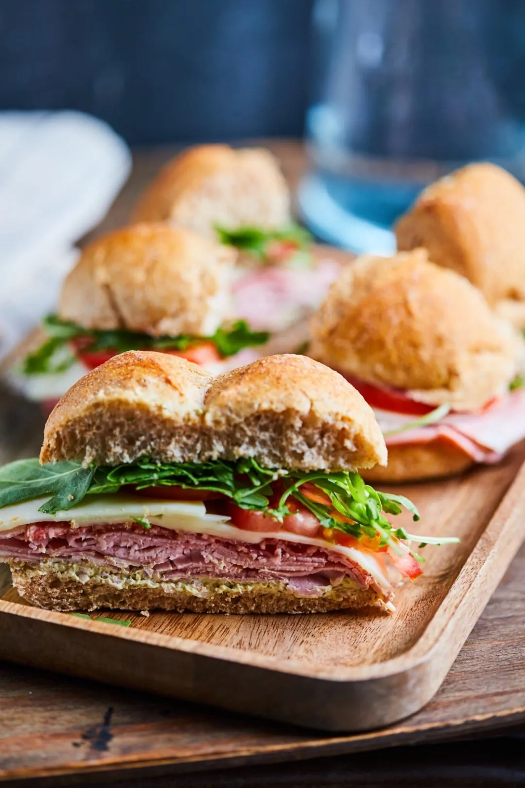 A zsemléket elfelezzük. A krémsajtot kikeverjük a pesztóval. A zsemlék alsó részét megkenjük a szendvicskrémmel, rápakoljuk a sonkát, majd a téliszalámit, a mozzarellát, pár szelet paradicsomot és a rukkolát. És már ehetjük is :D