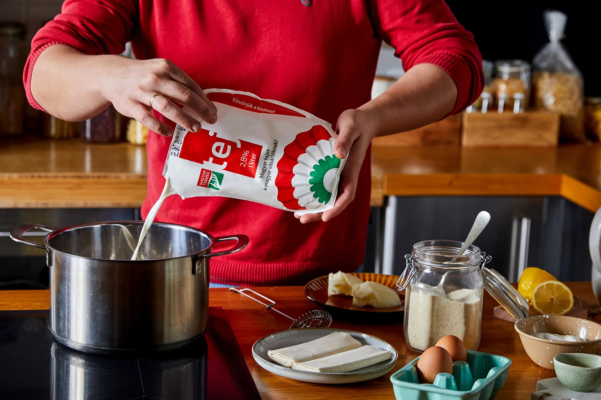 A nagyiféle tejbegrízes rétes elkészítéséhez a tejet közepes lángon elkezdjük melegíteni, amikor már meleg, hozzáadjuk a grízt és a cukrot, majd forrástól számítva kb. 1 percig főzzük. Ezután lehúzzuk a tűzről, beletesszük a vaníliás cukrot, a citrom reszelt héját és a tojások sárgáját. A tojásfehérjét kemény habbá verjük, és hozzákeverjük a grízt, végül belekeverünk 175 g tejfölt is.