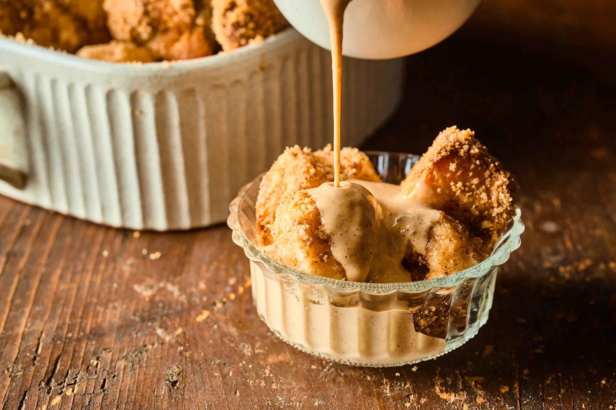 Ha van desszert, ami tényleg a nagymama konyháját idézi, akkor ez a nagyiféle aranygaluska a tökéletes választás: foszlós, vajas, illatos kelt tészta ropogós dióréteggel, egy adag selymes vaníliasodóval leöntve – az a fajta klasszikus, amiből mindig repetázni kell.