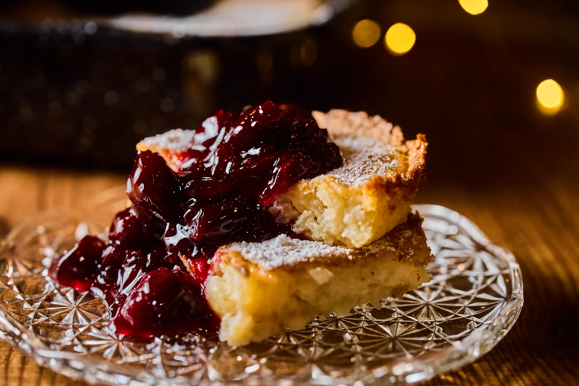 A rizskoch tetejét megszórjuk porcukorral, és meggyel a tetején tálaljuk.