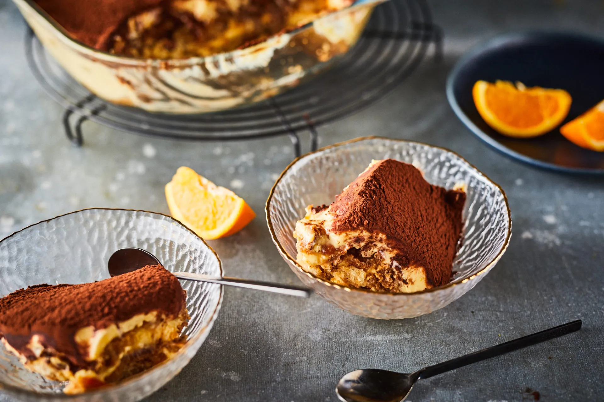 Az összeállításhoz megfőzzük a kávét, majd elkeverjük benne a porcukrot és a likőrt. Egyesével beleforgatjuk a babapiskótákat, és egy réteget lerakunk az edényünk aljára. Megkenjük a narancslekvár felével, majd rákanalazzuk a krém felét. Erre jöhet még egy kávéba áztatott piskótaréteg, majd a maradék lekvár és a krém. Minimum 2 órára a hűtőbe tesszük.