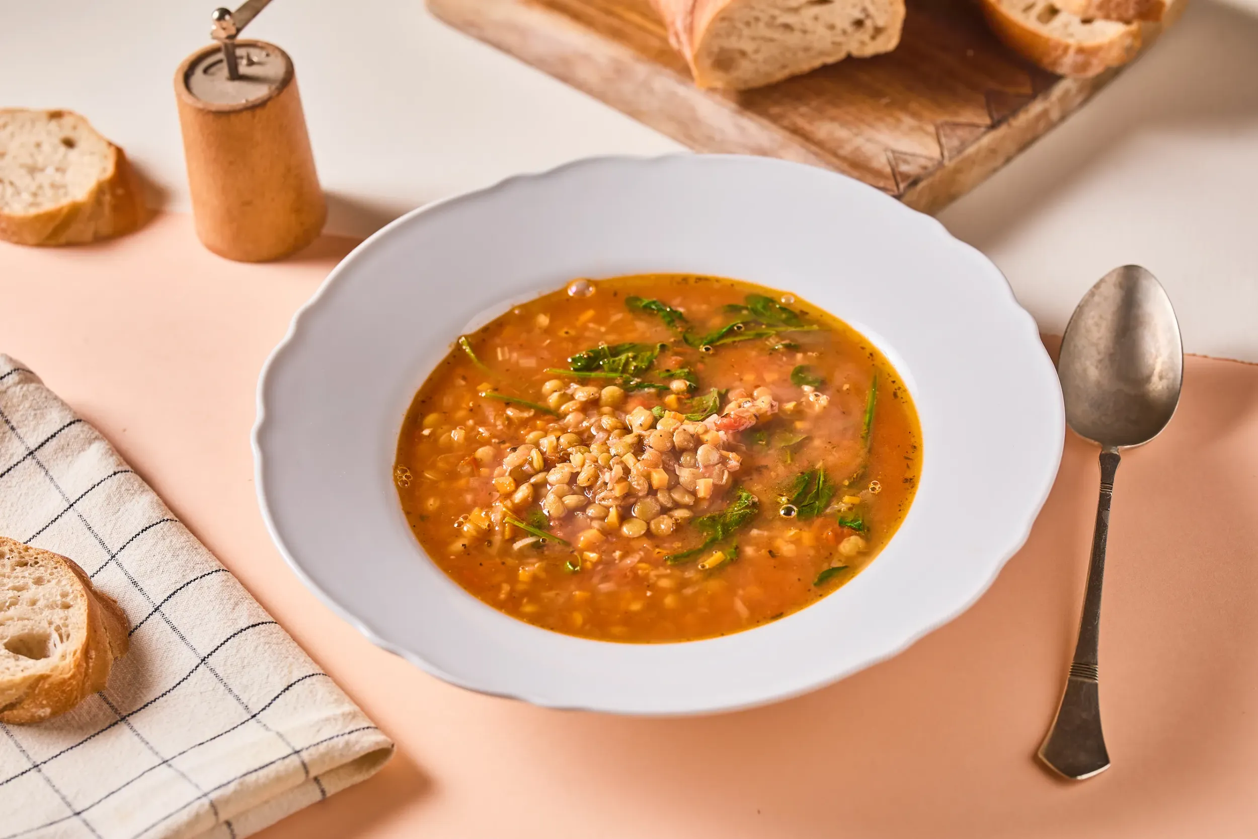 A titok nyitja – ahogy a jó dolgoknál általában – a türelem: ne felejtsétek el előző este minimum 8 órára beáztatni a lencsét, hogy tökéletes állagú legyen! A végeredmény minden várakozást megér: egy sűrű, rusztikus leves, amiben a bébispenót üde színfoltként roppan, a parmezán pedig selymesen, sósan öleli körbe az édeskésebb zöldségeket. Ne spóroljatok mellőle a friss ciabattával sem, mert vétek lenne a tányér alján hagyni akár egy cseppet is ebből az isteni szaftból. Buon appetito!