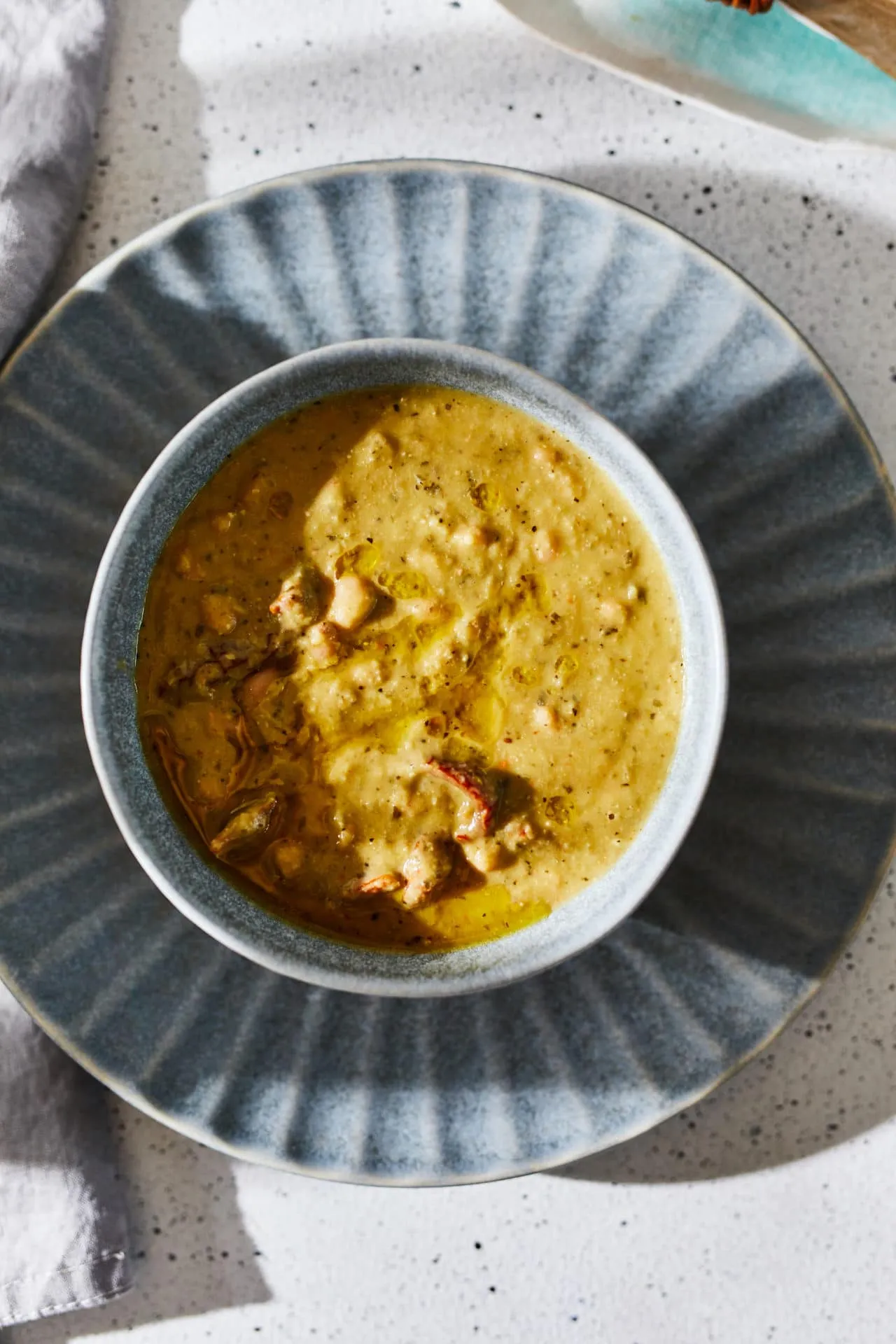 Az aprított hagymát és fokhagymát üvegesre pirítjuk az olívaolajon, megszórjuk a szárított bazsalikommal, felöntjük a borral, és a negyedére forraljuk. Rádobjuk az egyik leszűrt, átmosott babkonzervet, majd ráöntjük a vizet, és egy botmixerrel pürésítjük. Beletesszük a csíkokra vágott szárított paradicsomot, az alaplézselét, és lassú tűzön forraljuk 5-10 percig, hogy egy kicsit sűrűsödjön. Hozzátesszük a másik leszűrt és átmosott babot, majd még 5 percig bugyogtatjuk. Ízlés szerint sózzuk, borsozzuk. A kukoricakeményítőt elkeverjük egy nagyon kevés vízzel, és folyamatos keverés mellett a kellő sűrűségűre állítjuk a főzeléket. 1-2 percig még forraljuk, majd elzárjuk és belekeverjük a pesztót.