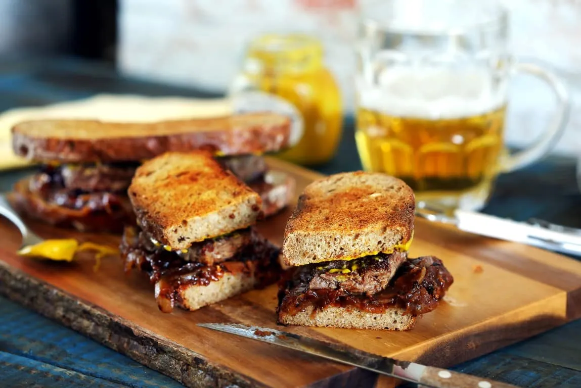 Ha valami igazán menő és tartalmas szendvicsre vágytok, akkor jó helyen keresgéltek. Elkészítettük a szendvicsek szendvicsét. Egészen pontosan egy szép szelet marha hátszín került egy ropogós rozskenyérbe, sült hagymával és némi mustárral. Ugye vacsira elkészítitek?