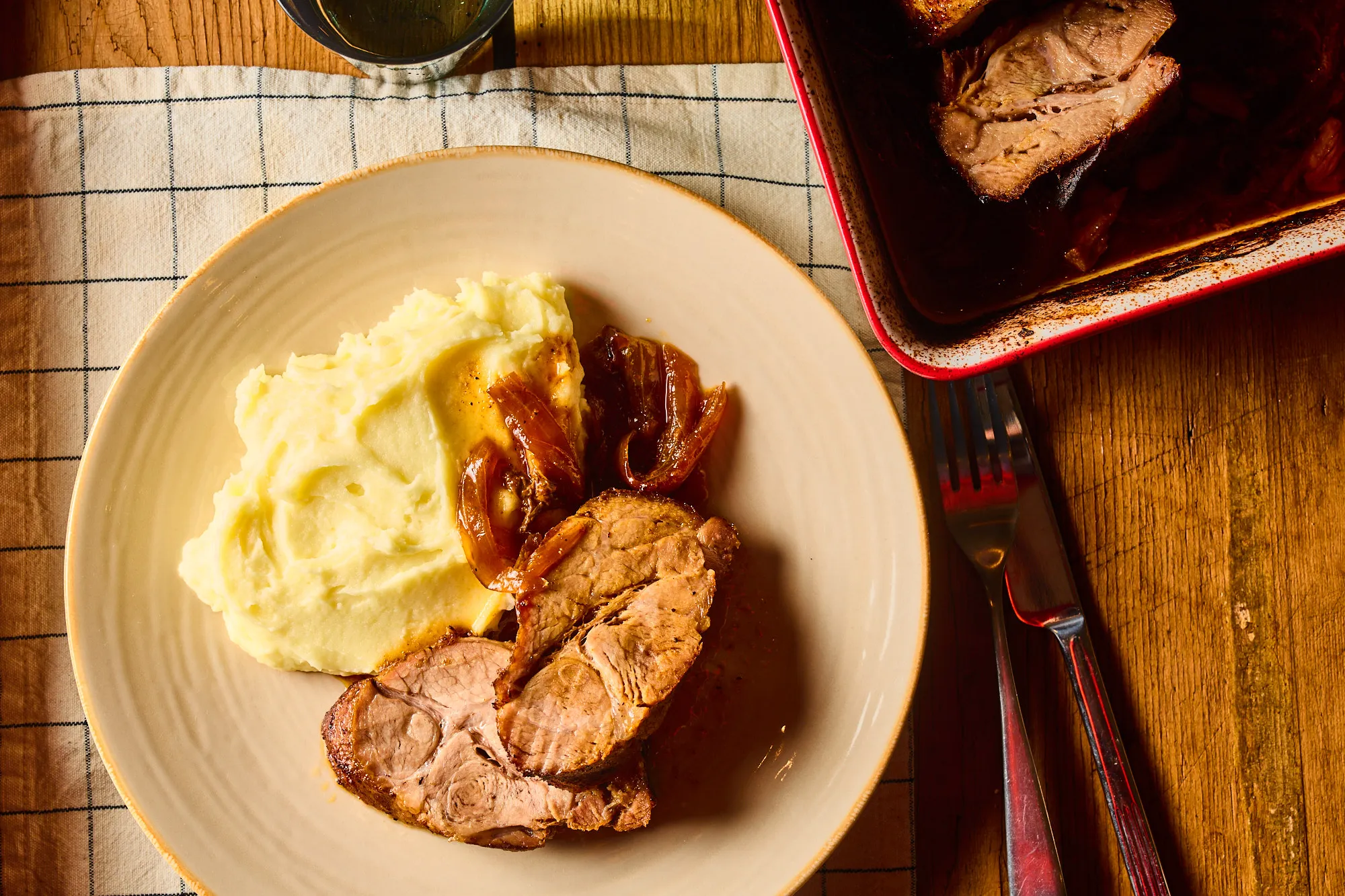 Szerintem krumplipürével a legjobb, és ne felejtsetek el mellé tálalni a tepsi aljában összegyűlt sült hagymás szaftból is.