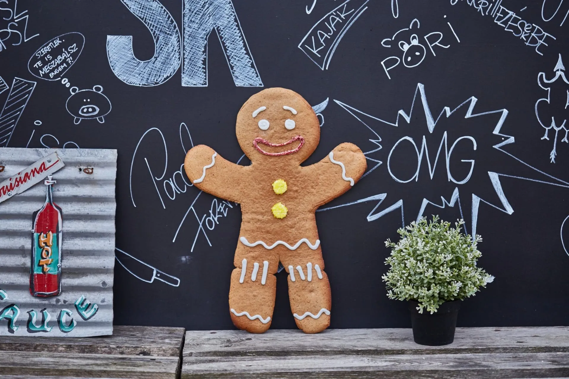 Lisztezett felületen kb. 5 mm vastagra nyújtjuk a tésztát, és kivágunk belőle egy mézeskalácsemberke-formát. Áthúzzuk egy sütőpapírral bélelt tepsire, majd 190 fokra előmelegített sütőben kb. 15 perc alatt megsütjük. A maradék tésztából tetszőleges mintákat szúrhatunk ki.