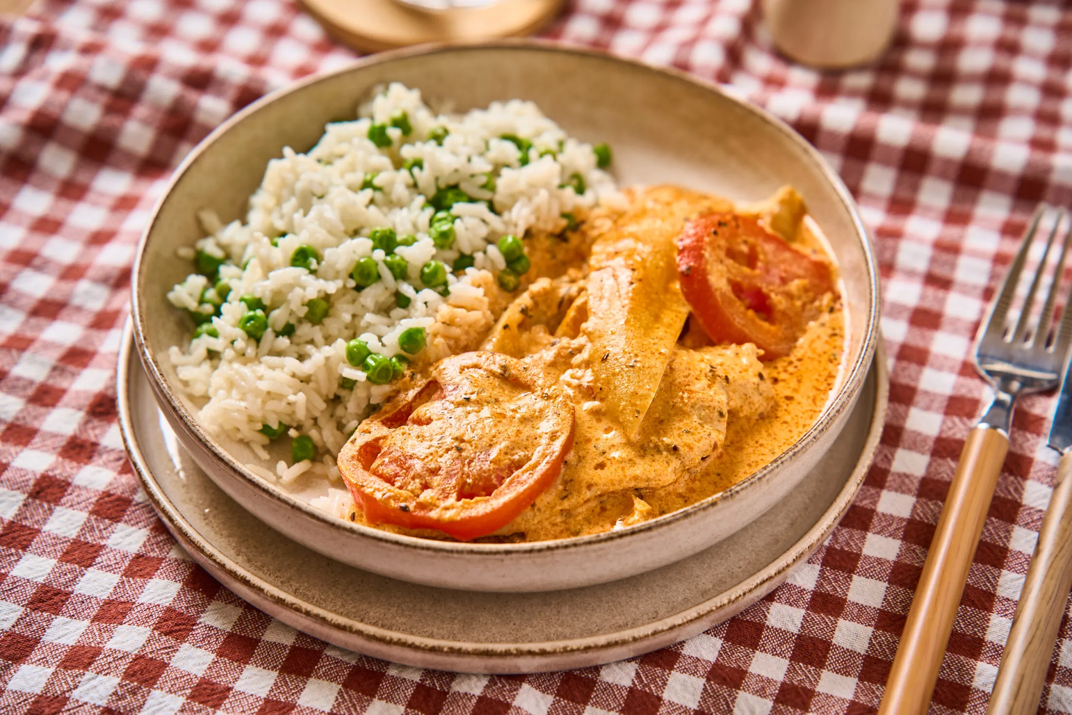 Paprikás-paradicsomos csirke tejszínes mártásban (Fotó: Street Kitchen)