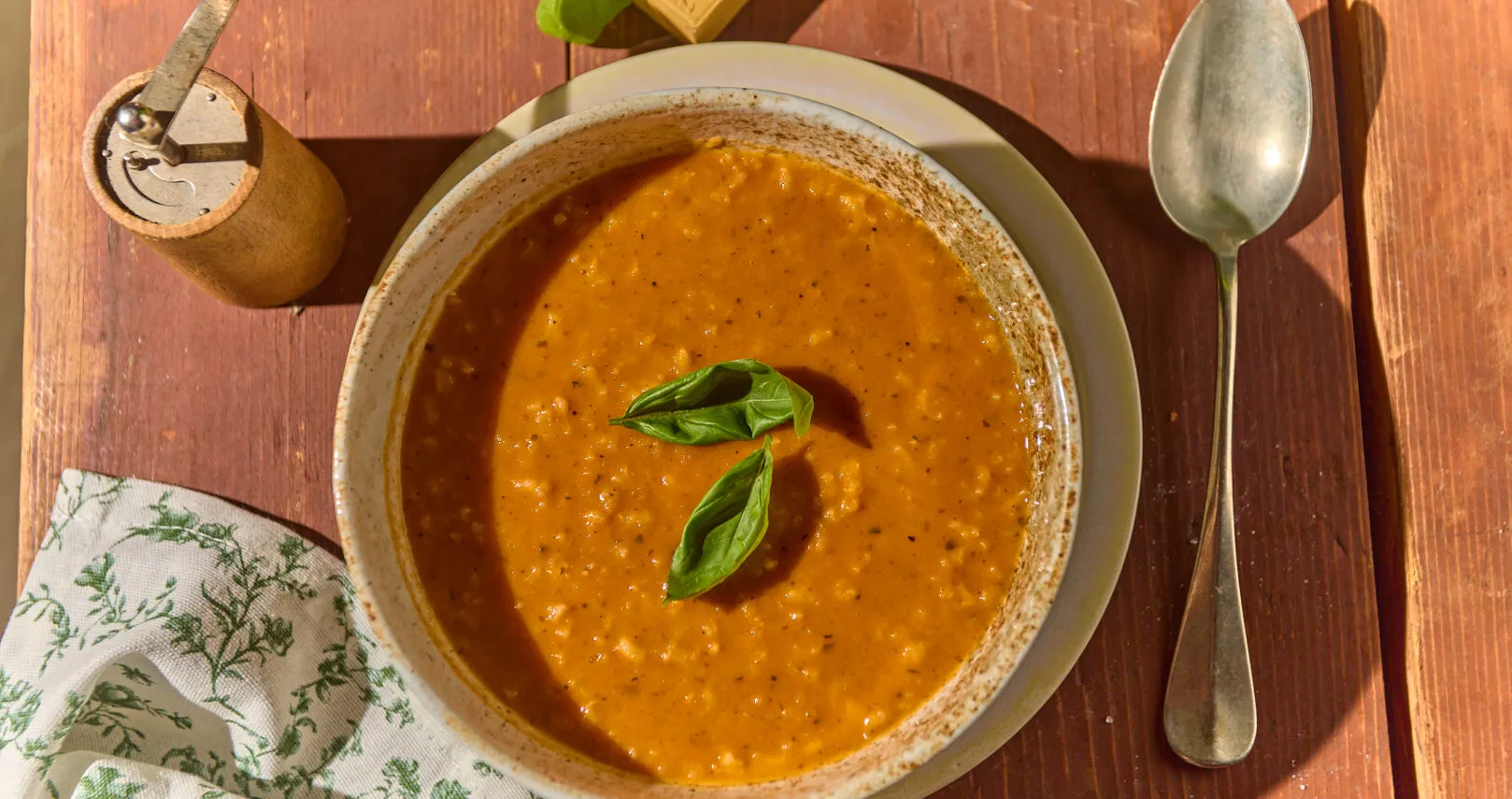 A paradicsomleves rizzsel az a klasszikus, amit mindenki evett már legalább százszor – épp ezért ideje egy kicsit felrázni! Ebben a receptben most nem a megszokott konzervparadicsomos irányt hozzuk, hanem sült zöldségekből indulunk, hogy egy igazán mély, édes-savanykás, karakteres levest kapjunk. A végén jön a rizs is, mert a jól ismert biztonságérzet azért kell – de most selymesen, frissen, új köntösben, tele ízzel.