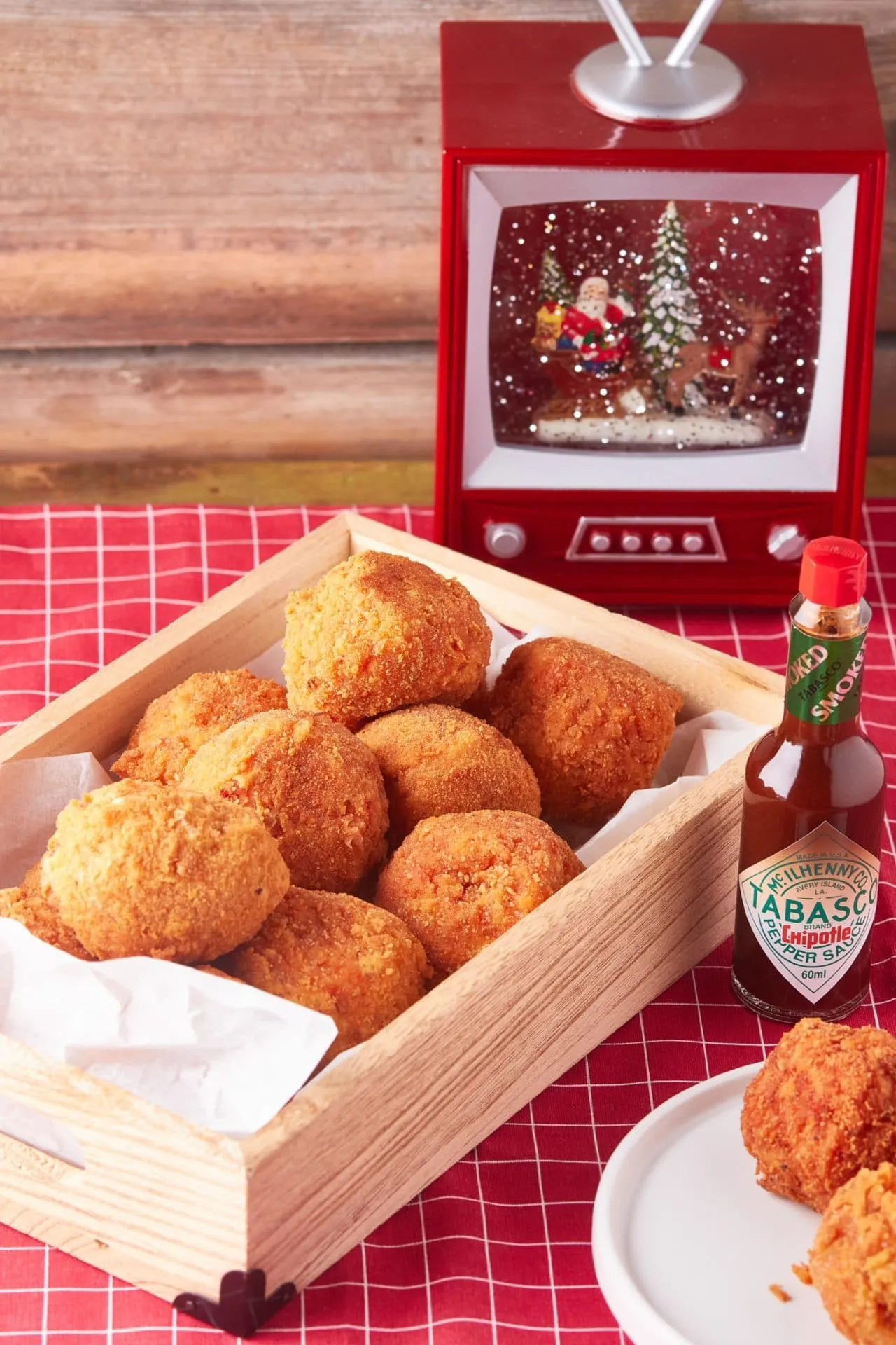 Másnap kiveszünk egy-egy nagy diónyi mennyiséget a masszából, a közepébe nyomunk egy-egy mozzarellagolyót, és gombócokat formázunk belőlük. A gombócokat bepanírozzuk: először a felvert tojásba, majd zsemlemorzsába forgatjuk őket, és bő, forró olajban kisütjük (ha nem tapad elég jól a tojás az arancinire, forgassuk először lisztbe, mint a sima panír esetében).