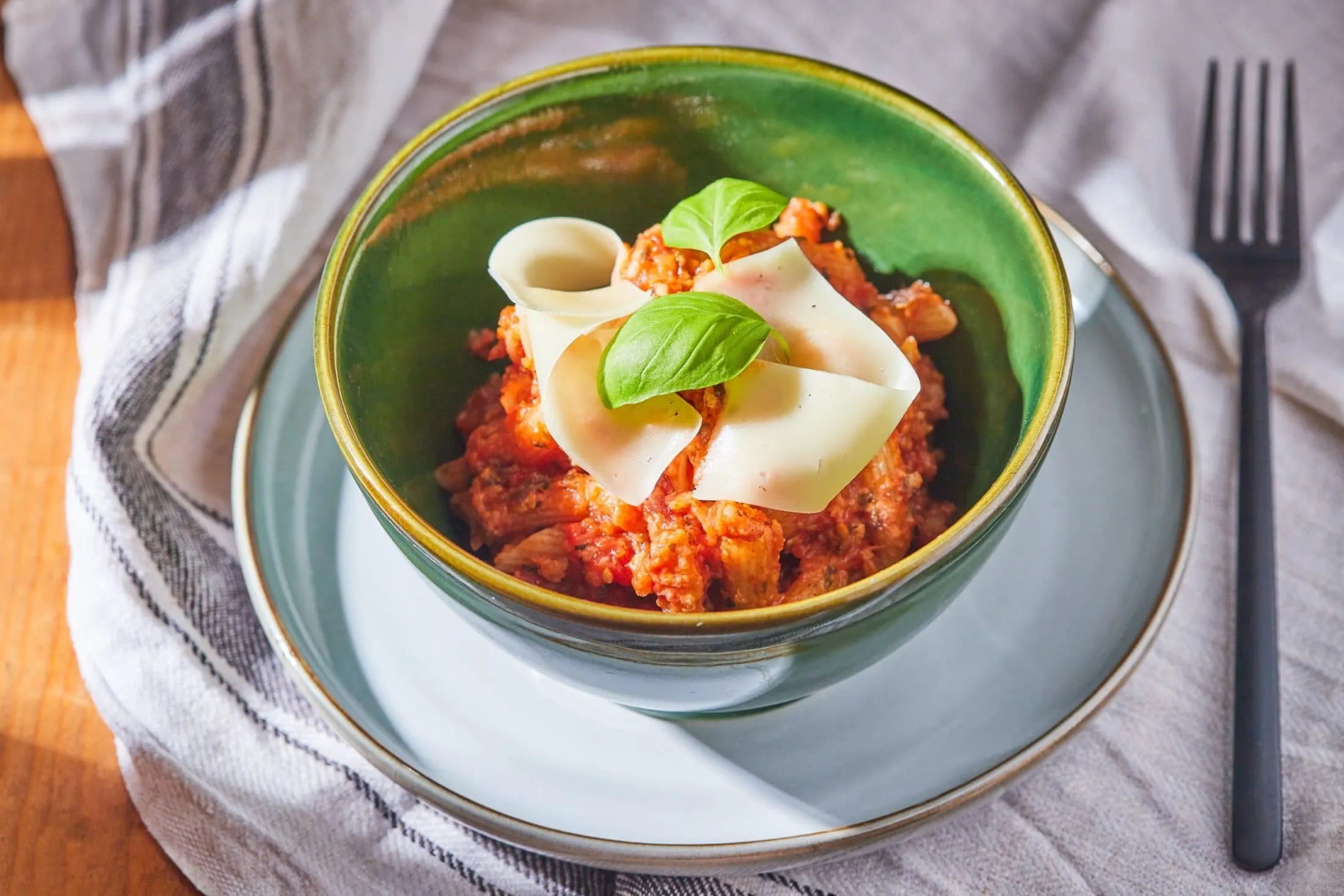 Miután letelt a négy perc, hagyjuk egy picit hűlni, majd alaposan átkeverjük. Visszahelyezzük a tetejére a zsírpapírt, és visszatesszük a mikróba még 4 percre. Ezután ismét alaposan elkeverjük – ha túl száraznak ítéljük, tehetünk még hozzá egy kevés vizet vagy paradicsomlevet –, majd még 3 percre betesszük a mikróba. Ezúttal már a zsírpapír nélkül.