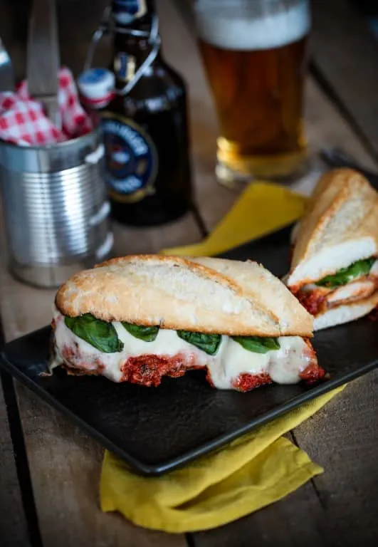 A sütőt előmelegítjük 175 fokra, majd óvatosan, hogy meg ne égjen, megpirítjuk mindkét félbevágott bagettet. Olajat hevítünk 175 fokra, és kisütjük benne a bepanírozott csirkemelleket. A ropogós bagettek alsó részére darabonként megy két nagy csirkemell (ezt már érdemes a sütőpapírral bélelt tepsin csinálni), majd meglocsoljuk a paradicsomszósszal, majd megpakoljuk a felszeletelt mozzarellával és a maradék reszelt parmezánt is ráhintjük. A bagettek tetejét nem rakjuk be, a megpakolt aljuk viszont mehet vissza a 200 fokra feltekert felső grilles sütőbe, ahol kb 5-8 perc alatt kész is lesznek, ha megolvad a sajt. Kivéve a sütőből mehet rá a tető, kettévágjuk a bagetteket, és jó étvágyat!
