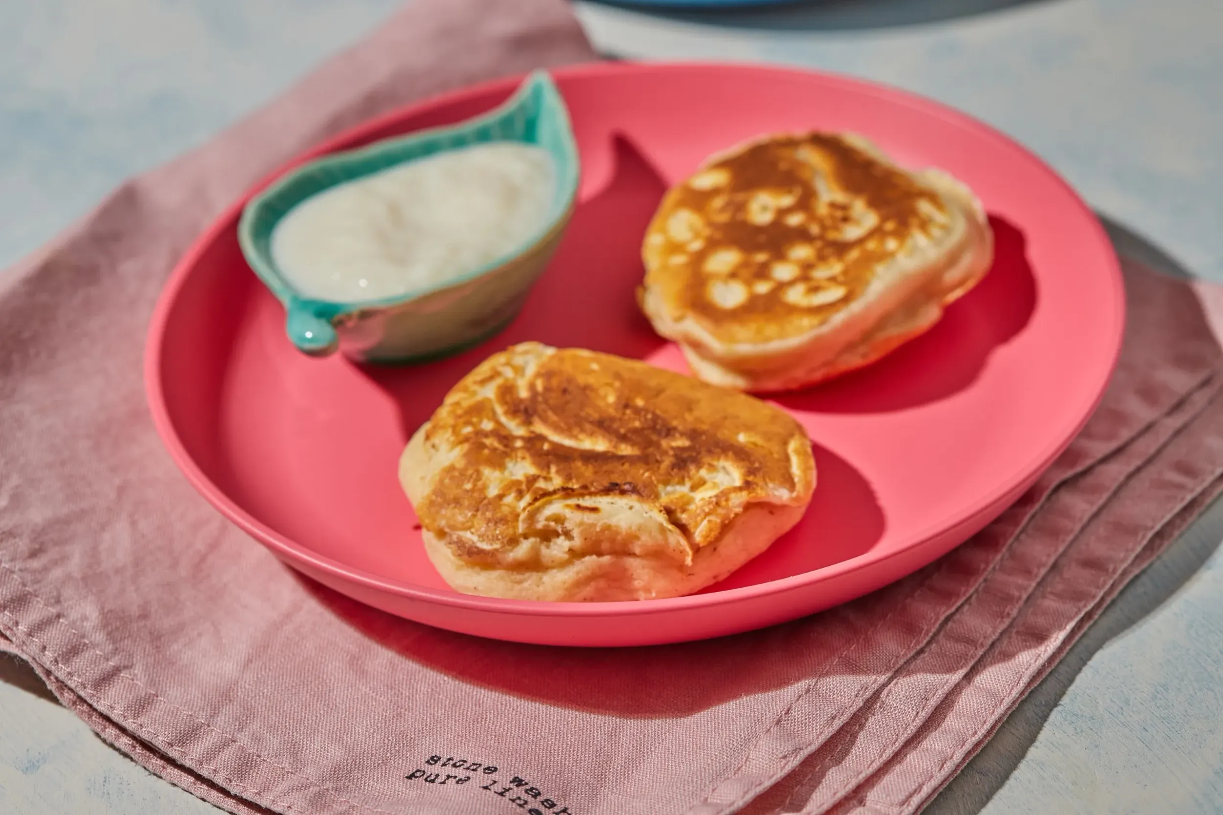 A körteszószhoz a körtét és a joghurtot botmixer segítségével pürésítjük, és a kisült palacsinták mellé tálaljuk.